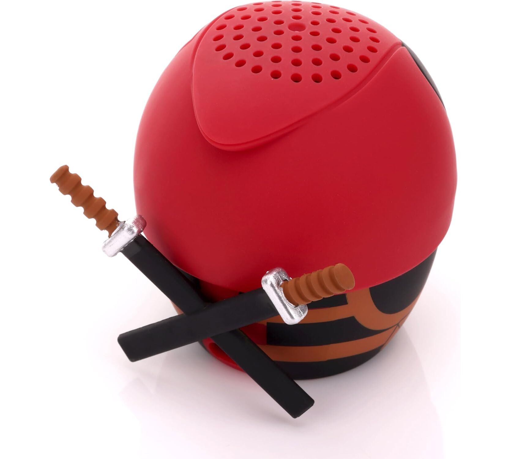 Το Bitty Boomers Deadpool συνδυάζει το εντυπωσιακό design του χαρακτήρα της Marvel με ενσωματωμένη τεχνολογία ήχου. Παρά το μικρό του μέγεθος, προσφέρει καθαρό ήχο, αυτονομία για πάνω από 4 ώρες αναπαραγωγής, και δυνατότητα να συνδεθείς ασύρματα μέσω Bluetooth.