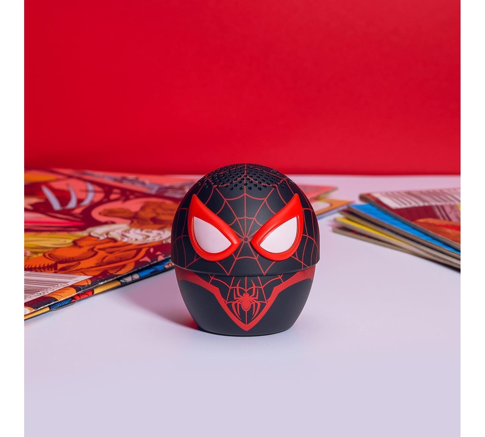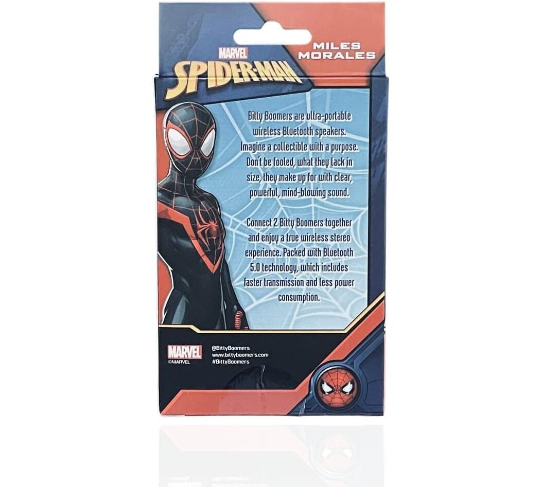 Αυτό το μικρό αλλά ισχυρό ηχείο, εμπνευσμένο από τη σειρά “Spider-Verse”, συνδυάζει συλλεκτικό σχεδιασμό, ασύρματη σύνδεση μέσω Bluetooth και αυτονομία για ώρες. Μπορεί να συνδεθεί με κινητό, tablet ή laptop.