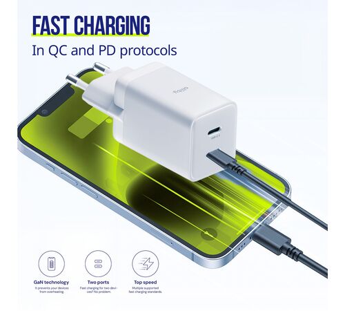 Η προηγμένη τεχνολογία GaN εξασφαλίζει εξαιρετικά γρήγορη φόρτιση σε κομψό και συμπαγή σχεδιασμό. Επιλέξτε ισχύ και στυλ σε ένα. #13#10#13#10Προδιαγραφές: Ισχύς 45W, 1 θύρα USB-C, χρώμα λευκό.