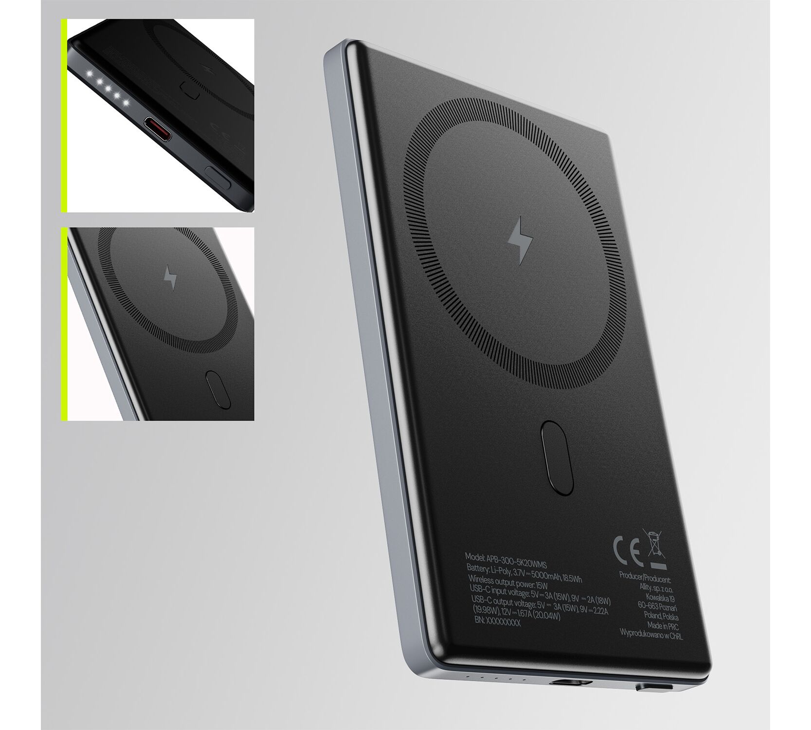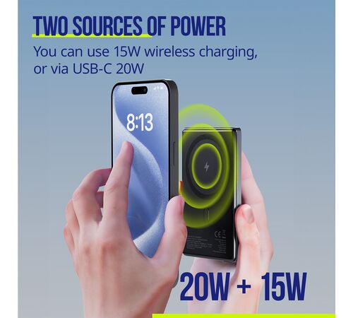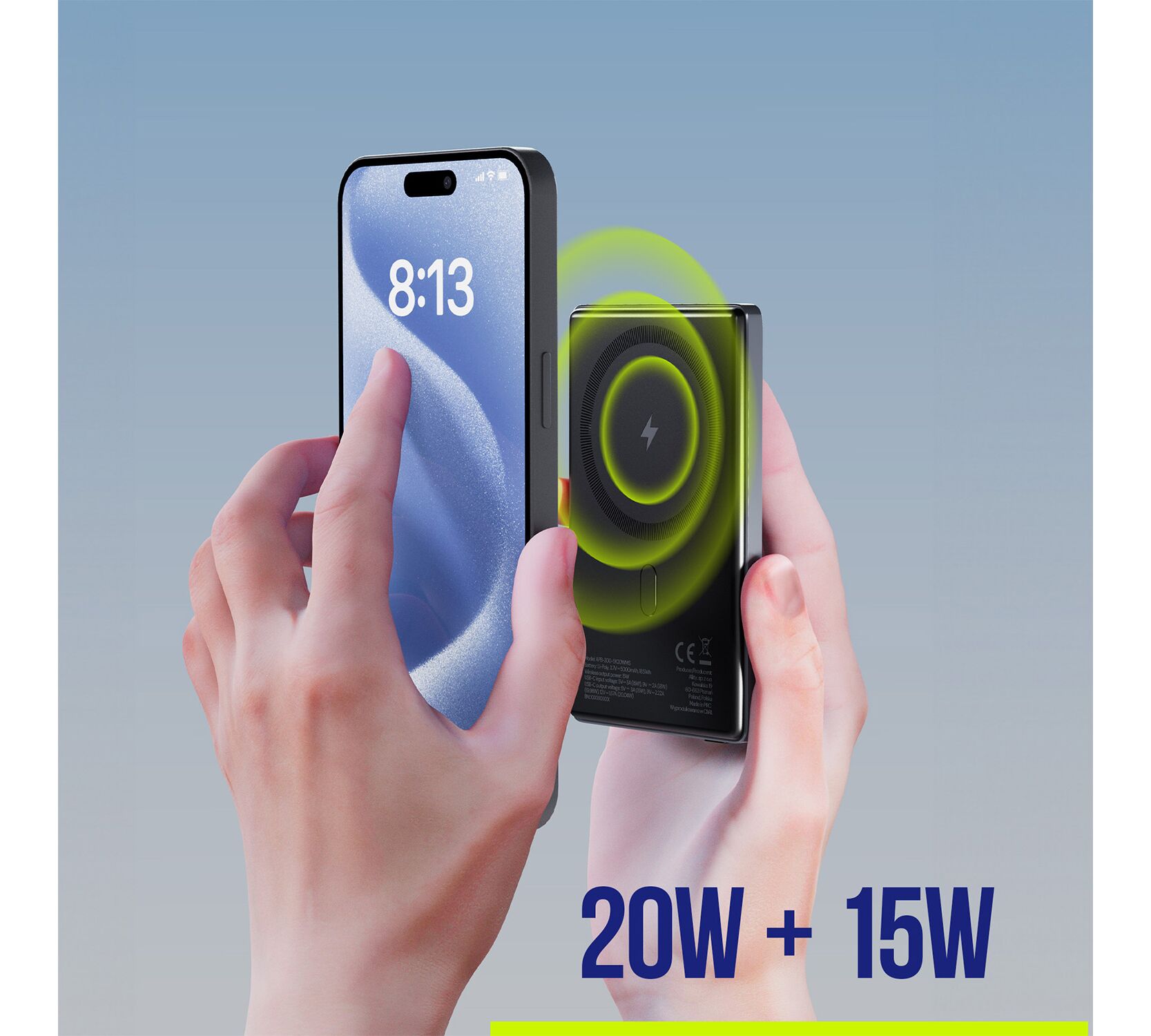 Εξοπλισμένο με μαγνητική τεχνολογία MagSafe, εξασφαλίζει τέλεια εφαρμογή και βολική φόρτιση χωρίς καλώδια. Η χωρητικότητα των 5000 mAh και η δυνατότητα ασύρματης φόρτισης 15 W το καθιστούν εξαιρετική λύση για το smartphone σας σε οποιαδήποτε κατάσταση.