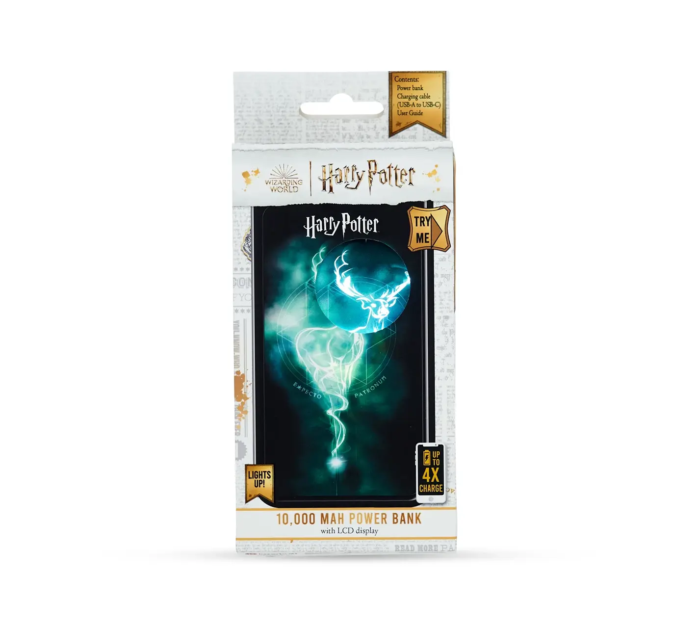 Ξεχωρίζει γιατί:- Εφε φωτισμού Patronus: Φωτίζεται το ραβδί του Χάρι και εμφανίζεται το εμβληματικό ελάφι-Patronus όταν το power bank ενεργοποιείται ή κατά τη διάρκεια της φόρτισης