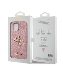 Guess - PU Glitter 4G Metal Logo Θήκη για iPhone 15 – Pink