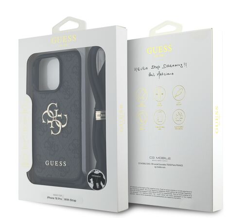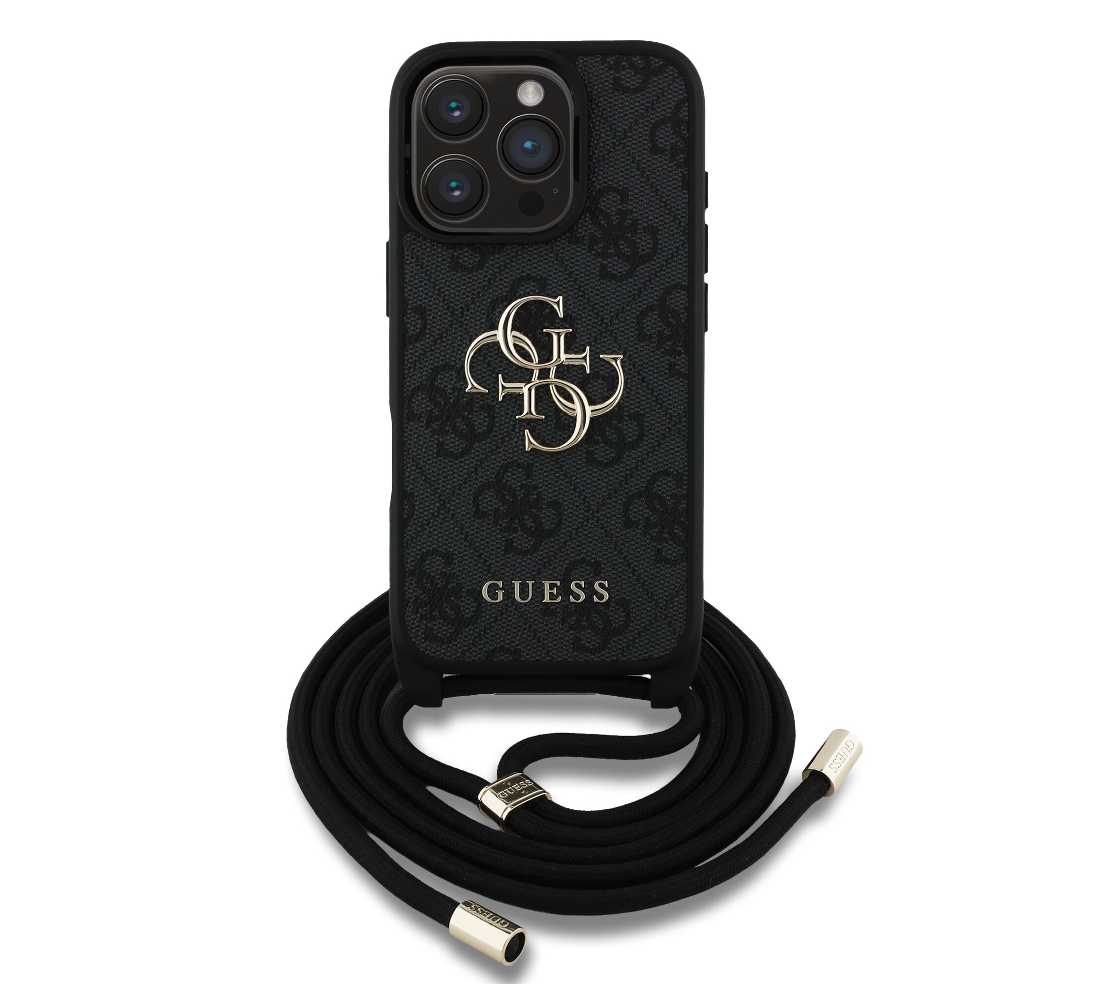 Guess - PU 4G Metal Logo Θήκη με Crossbody Strap για iPhone 16 Pro – Black