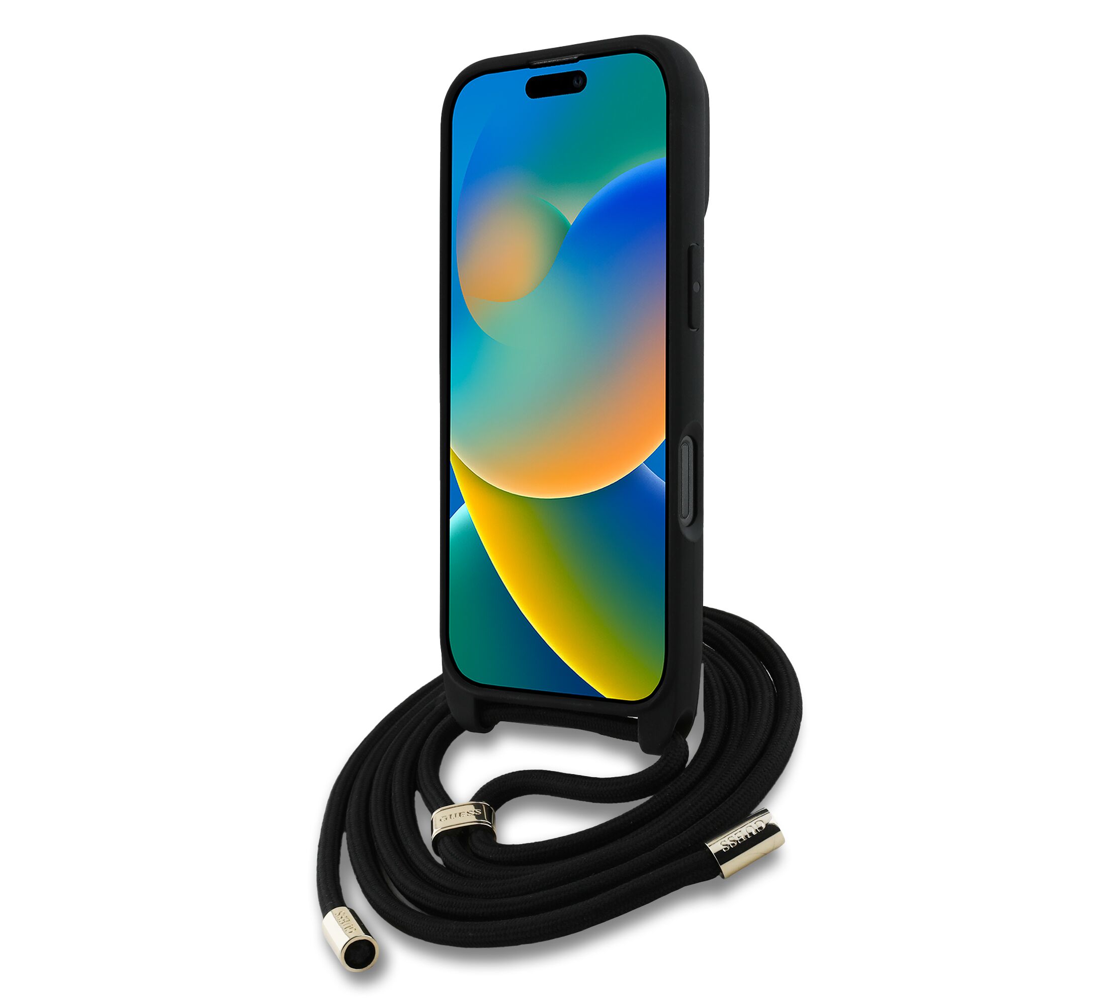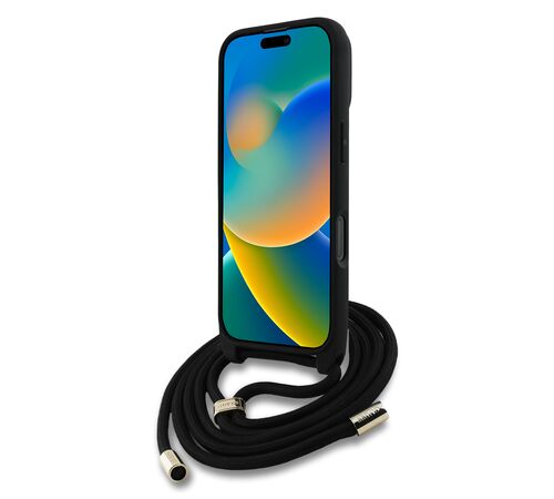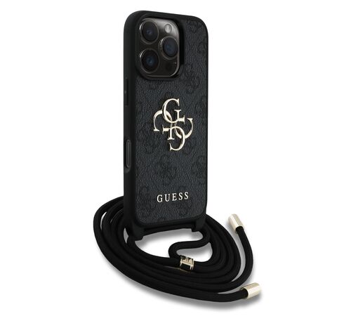 Guess - PU 4G Metal Logo Θήκη με Crossbody Strap για iPhone 16 Pro Max – Black