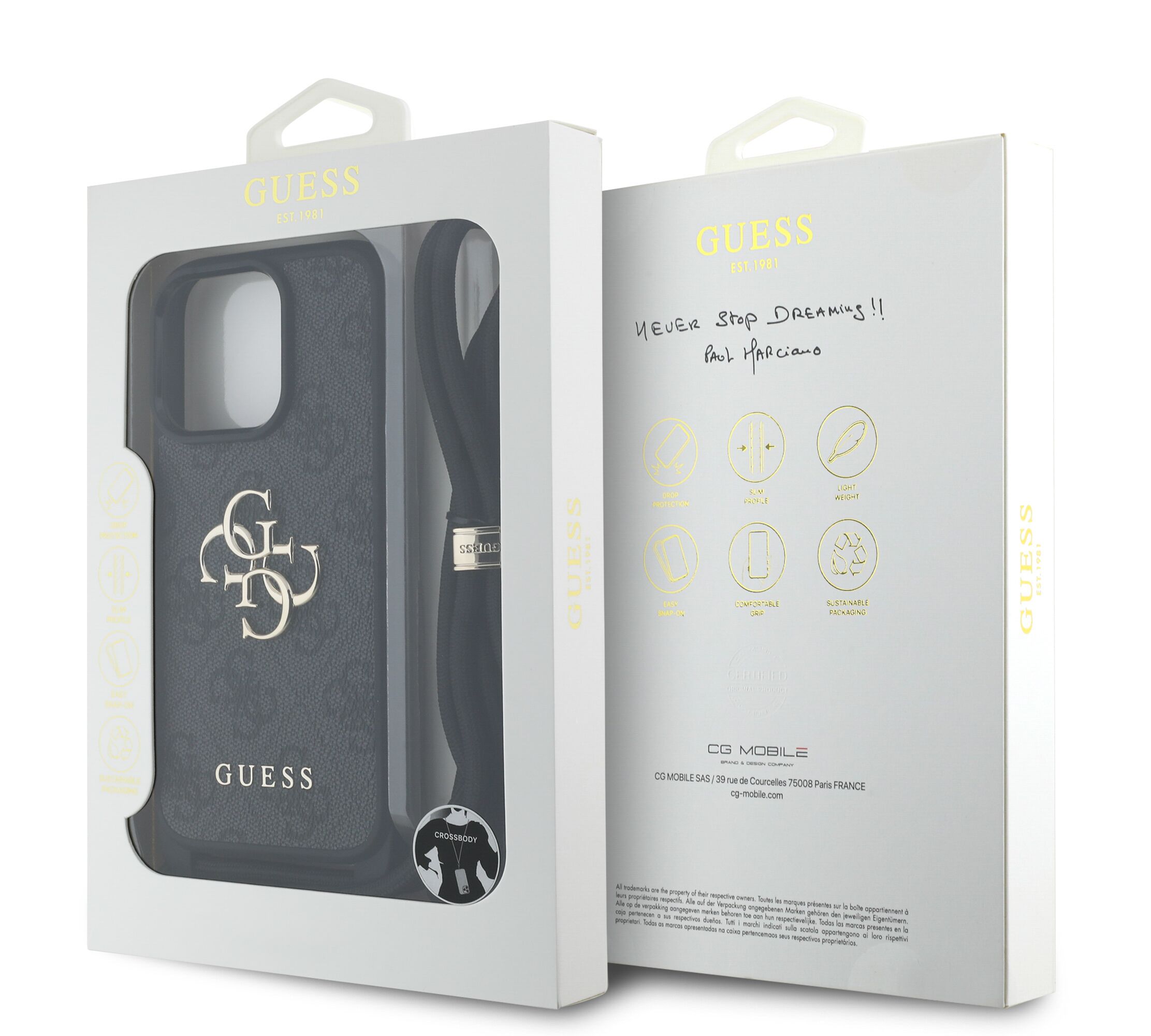 Το κινητό σου είναι το πιο απαραίτητο αξεσουάρ, όπου κι αν βρίσκεσαι! Φρόντισε να το "ντύσεις" με την πιο fashionable θήκη που θα μαγνητίσει όλα τα βλέμματα! Το εμβληματικό brand Guess® ξέρει τον τρόπο να σε κάνει να πετύχεις ακαταμάχητες εμφανίσεις και να κλέψεις τις εντυπώσεις! Ασχολείσαι με τα social media; Τότε σίγουρα χρειάζεσαι τη θήκη που θα λατρέψουν όλοι οι followers ! Η "4G Logo Collection" είναι ιδανική για εσένα που θες το κάτι διαφορετικό για τη συσκευή σου: διαθέτει σαγρέ pattern, με το καφέ 4G logo της Guess® να βρίσκεται στο πίσω μέρος. Έτσι έχεις όλο το χώρο να τοποθετήσεις pop holder ή οποιοδήποτε αξεσουάρ κάνει τη ζωή σου πιο εύκολη Οι officially licensed Guess® θήκες προστασίας, ξεχωρίζουν γιατί: