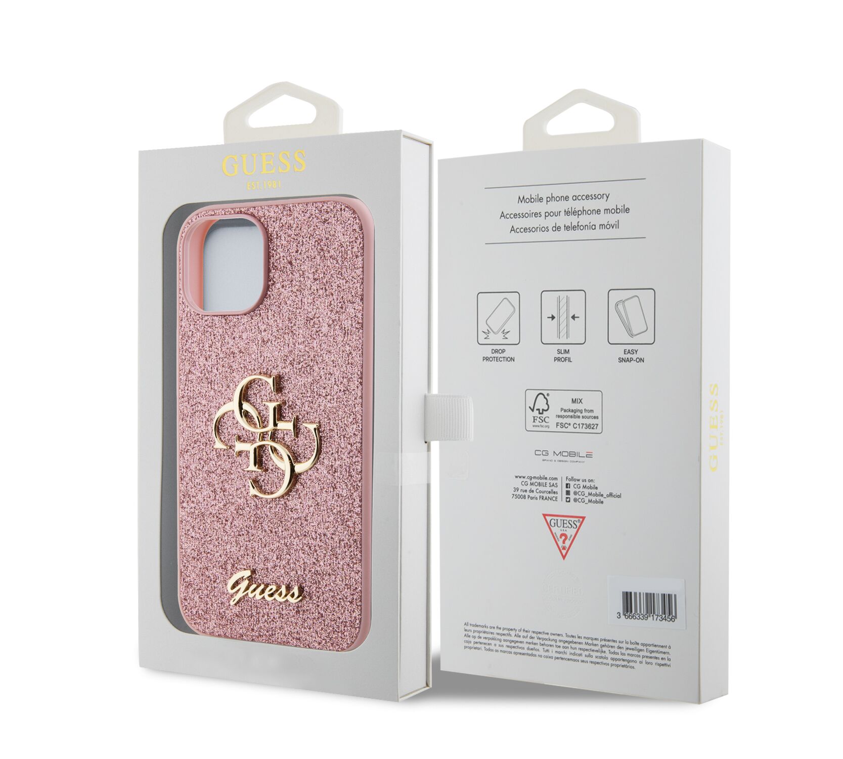 Guess - PU Glitter 4G Metal Logo Θήκη για iPhone 15 – Pink