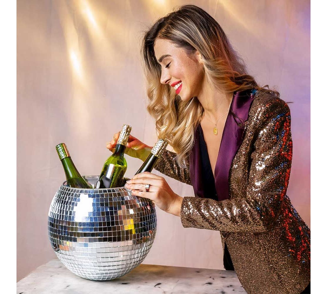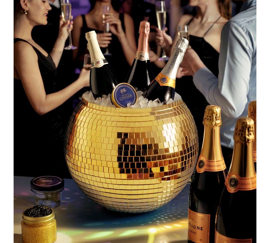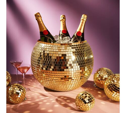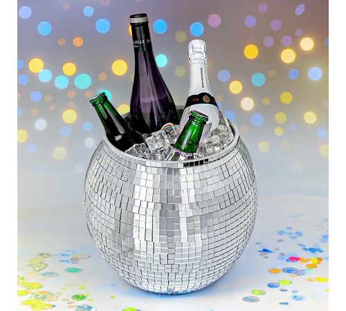 Με ρετρό, λαμπερό σχεδιασμό εμπνευσμένο από ντισκομπάλα, αυτός ο κουβάς δεν είναι μόνο λειτουργικός αλλά και εντυπωσιακός. Ιδανικός για να διατηρείτε τα ποτά σας δροσερά, προσθέτει μια μοναδική πινελιά στη διακόσμηση του πάρτι σας, δημιουργώντας αξέχαστη ατμόσφαιρα.