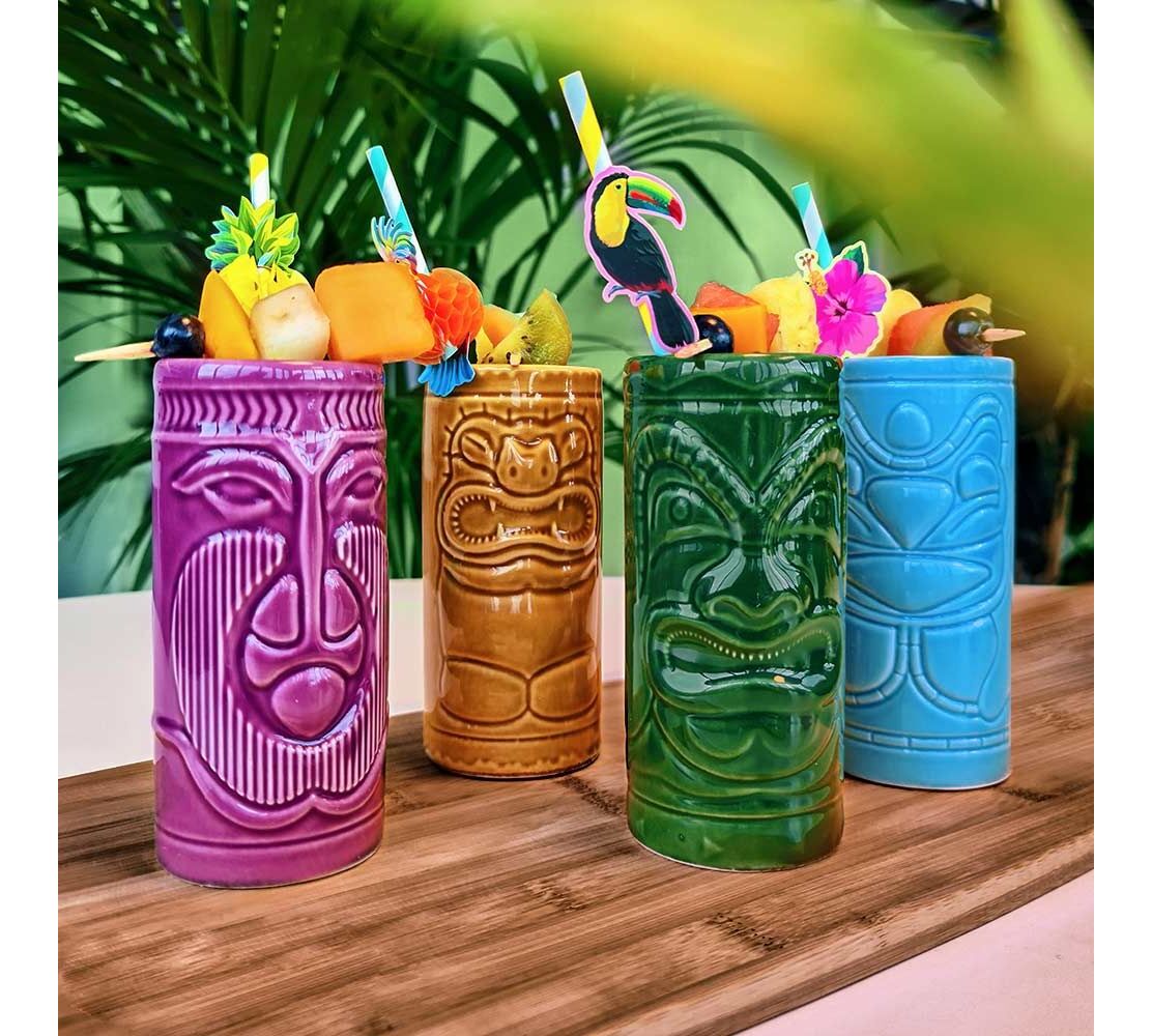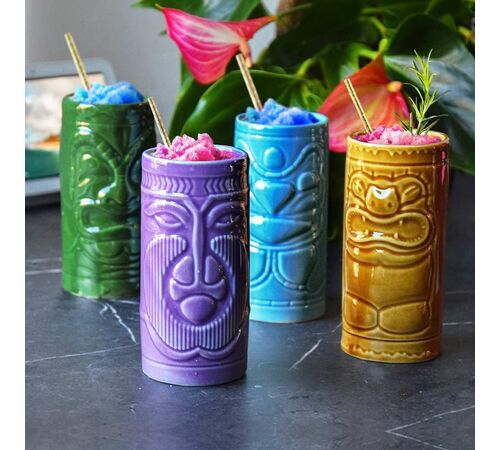 Κάθε κούπα είναι κατασκευασμένη από υψηλής ποιότητας κεραμικό, με μοναδικό σχέδιο και ζωηρά χρώματα που ξεχωρίζουν στο τραπέζι και τραβούν τα βλέμματα. Αυτές οι Tiki mugs είναι ιδανικές για να σερβίρετε τα αγαπημένα σας τροπικά κοκτέιλ — από Mai Tai και Zombie μέχρι Pina Colada — αλλά λειτουργούν εξίσου καλά και για άλλα ποτά, δίνοντας μια πινελιά εξωτισμού σε κάθε στιγμή. Το σετ περιλαμβάνει 4 κεραμικές κούπες, που έρχονται σε ελκυστική συσκευασία, πράγμα που τα καθιστά και εξαιρετικό δώρο. Οι κούπες πλένονται κανονικά στο πλυντήριο πιάτων, για ευκολία στη χρήση και στη φροντίδα.
