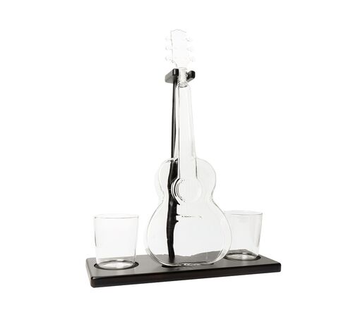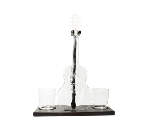 - Συνοδεύεται από δύο ποτήρια 10 oz (περίπου 150 ml έκαστο) με στυλιστικά στοιχεία που ταιριάζουν αρμονικά με την καράφα σε σχήμα κιθάρας