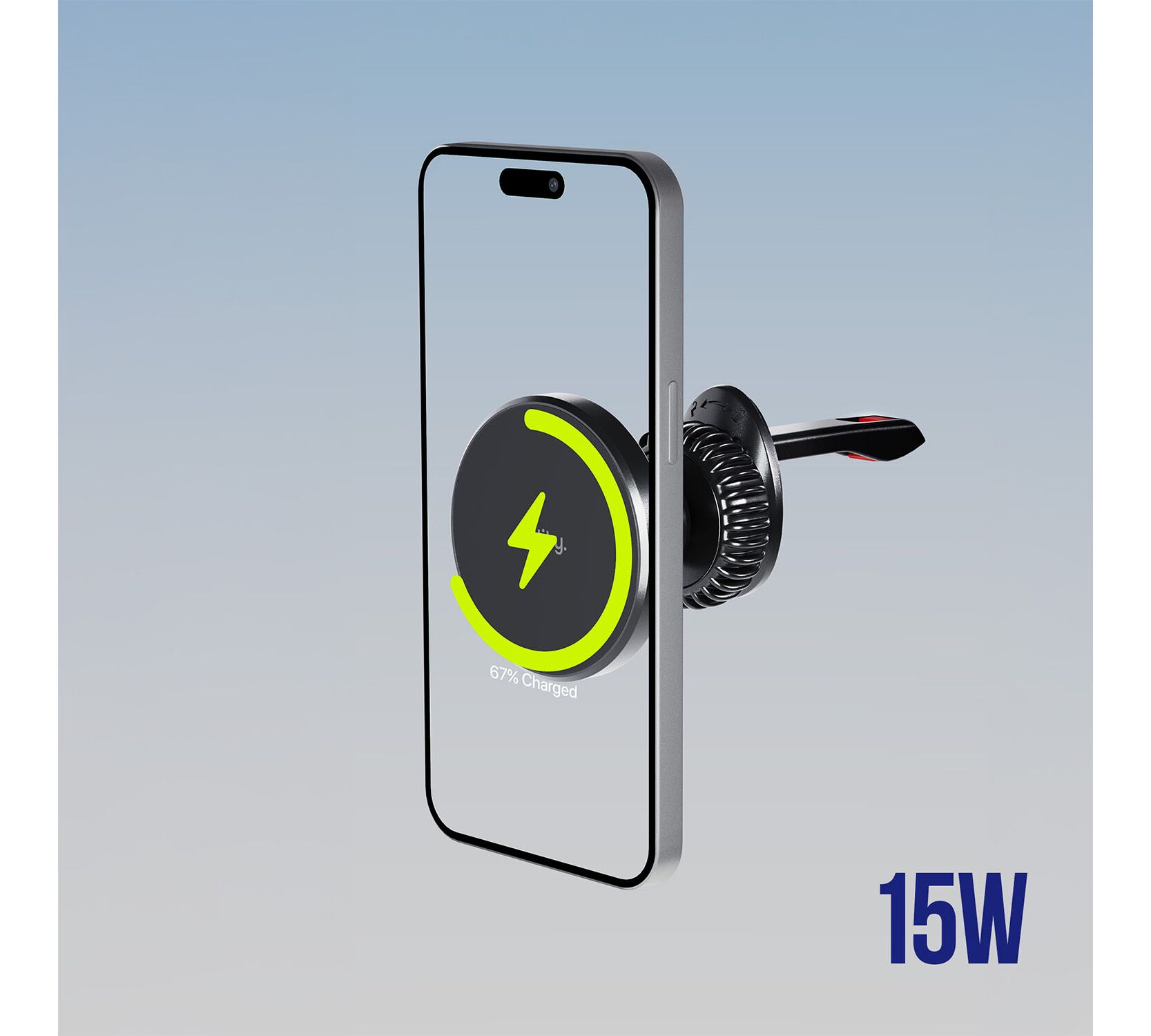 Η μαγνητική βάση αυτοκινήτου με ασύρματη φόρτιση 15W παρέχει γρήγορη και ασφαλή φόρτιση χάρη στην τεχνολογία MagSafe. Η εύκολη εγκατάσταση στον αεραγωγό δεν απαιτεί περίπλοκη συναρμολόγηση, ενισχύοντας την άνεση του χρήστη. Η δυνατότητα προσανατολισμού της οθόνης προς οποιαδήποτε κατεύθυνση επιτρέπει την άνετη χρήση της πλοήγησης και άλλων λειτουργιών του smartphone. Η καθολική είσοδος USB-C και το συμπαγές καλώδιο (0,7 m) διευκολύνουν την ενσωμάτωση με διάφορα οχήματα. Με τον κομψό σχεδιασμό και την αξιοπιστία του, το ACH-300 αποτελεί ελκυστική επιλογή για τους πιο απαιτητικούς πελάτες. Αυτό το προϊόν βοηθά να ξεχωρίσετε στην αγορά, προσελκύοντας την προσοχή των καταναλωτών που αναζητούν αξεσουάρ αυτοκινήτου υψηλότερης ποιότητας.