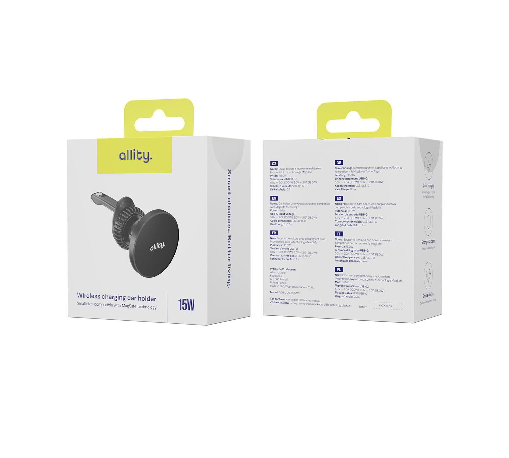 Βάση αυτοκινήτου Allity για αεραγωγό ACH-300 μαγνητική με ασύρματη φόρτιση μαύρη 15W