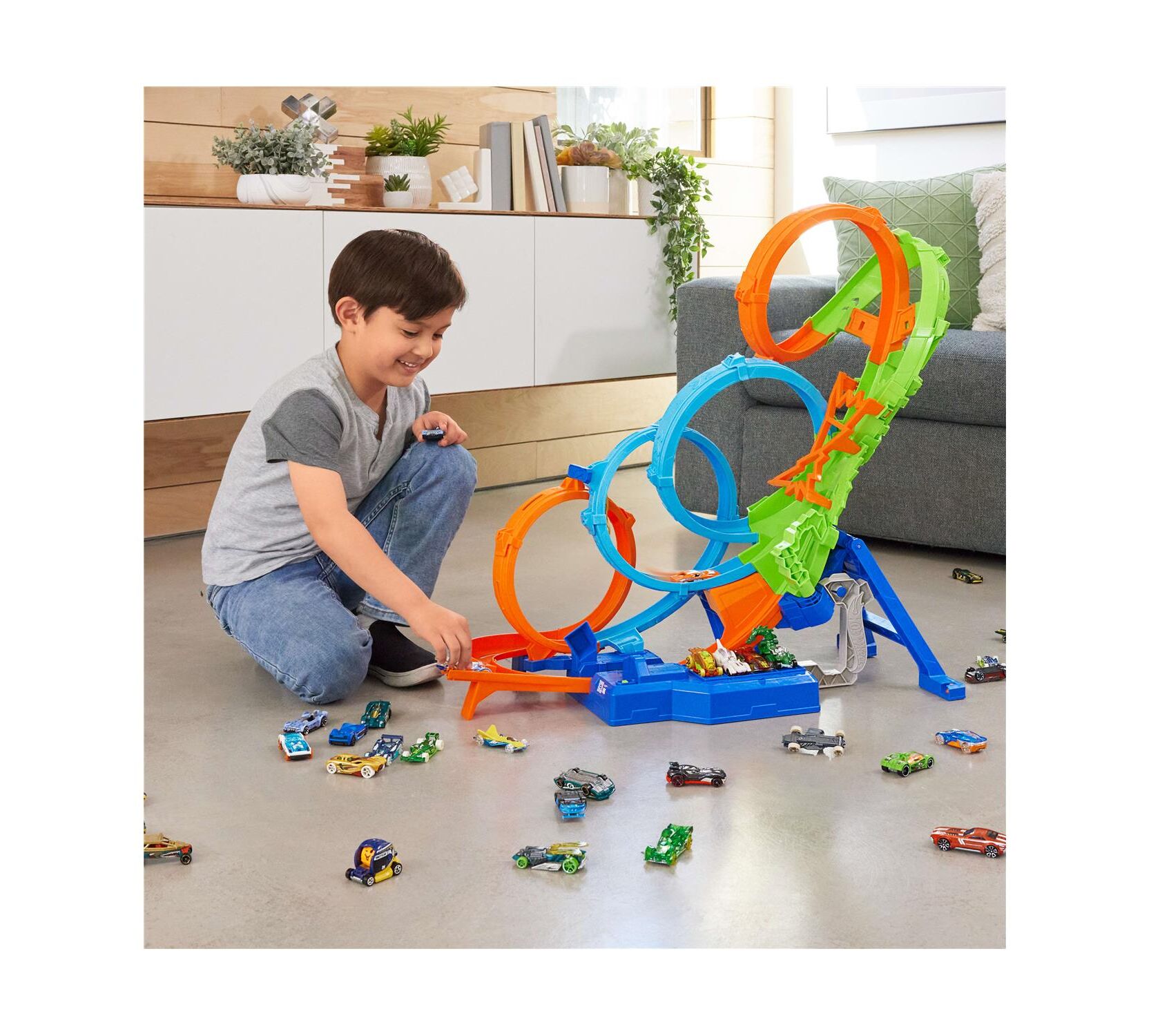 Δημιούργησε απίθανες κούρσες, εκτόξευσε τα αυτοκινητάκια σου μέσα από τους βρόχους και ζήσε τη συναρπαστική δράση Hot Wheels Stunt Tracks!