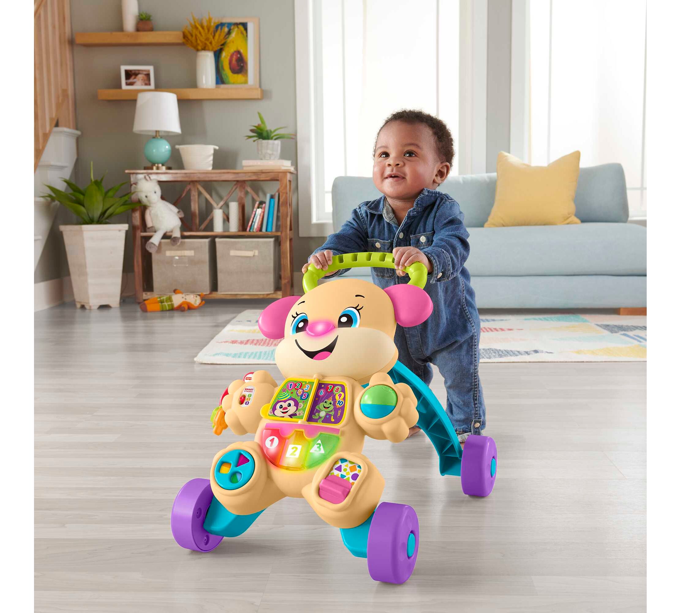 Φύγαμε για βόλτα! Η Εκπαιδευτική Στράτα Σκυλάκι Smart Stages είναι ο τέλειος φίλος του μωρού που θα το απασχολήσει με δραστηριότητες και θα το συνοδεύσει στα πρώτα του βήματα με πολλές ενθαρρυντικές φράσεις. Καθώς το μωρό μεγαλώνει, το εκπαιδευτικό περιεχόμενο του παιχνιδιού του παρουσιάζει το αλφάβητο, σχήματα, χρώματα, αρίθμηση, ακόμα και αγγλικές λέξεις! Οι μικροί μύες του μωρού θα εξασκηθούν καθώς αρχικά θα κάθεται να παίζει με τα παιχνίδια της στράτας και μετά θα σηκώνεται και θα περπατάει στηριζόμενο πάνω της. Το μωρό μαθαίνει την έννοια της δράσης-αντίδρασης καθώς καταλαβαίνει ότι πρέπει να πατήσει τα κουμπιά ή να σπρώξει τη στράτα για να ενεργοποιήσει τη μουσική και τις φράσεις