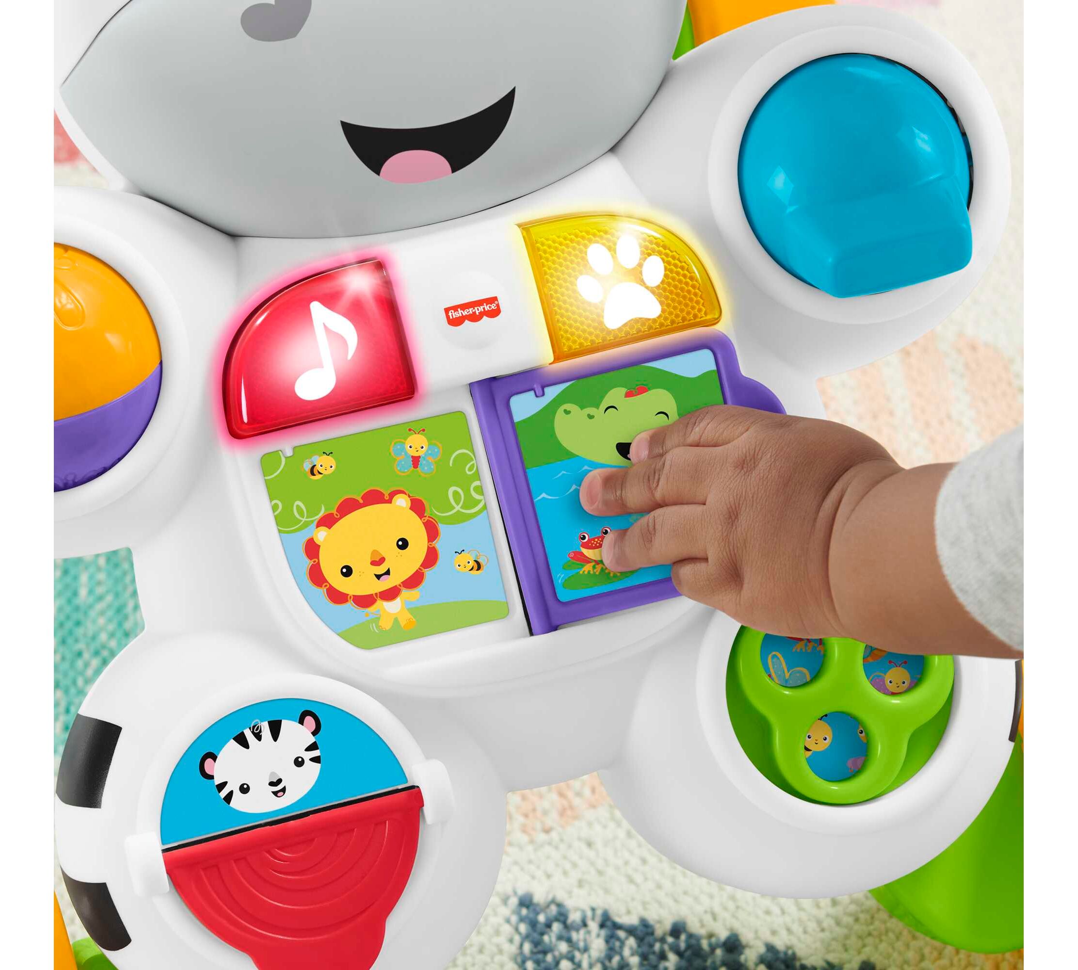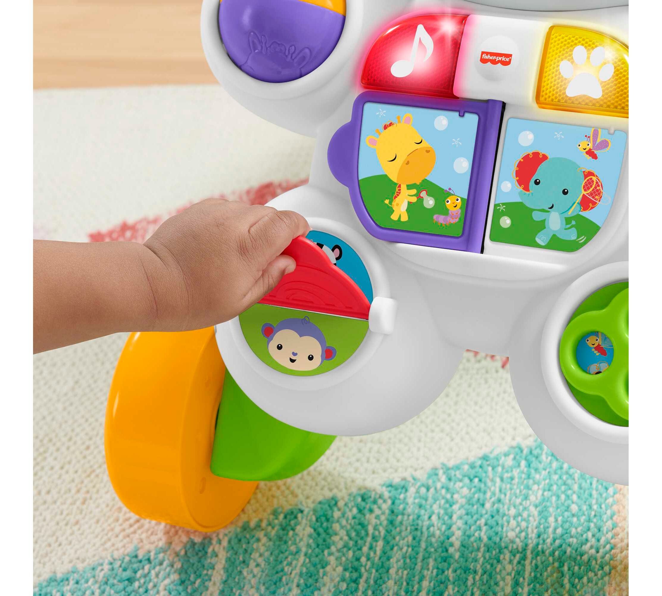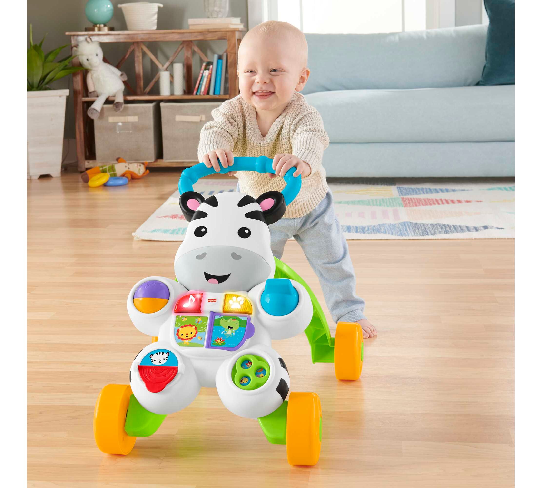 H Στράτα - Ζέβρα της Fisher-Price ενθαρρύνει τα πρώτα βήματα και είναι ο πρώτος φίλος που θα θέλατε να έχει το μωρό σας! Γυρίστε, αναποδογυρίστε, περιστρέψτε και πατήστε. Το παιχνίδι έχει πολλές δραστηριότητες για το μωρό όταν παίζει καθιστό. Το μωρό μπορεί να γυρίσει τις σελίδες ή να πατήσει τα κουμπιά που ανάβουν για να ακούσει τραγουδάκια και φράσεις για γράμματα και αριθμούς! Όταν το μωράκι μαθαίνει να περπατάει, η λαβή, που είναι ιδανική για τα μικρά χεράκια του, και η βάση με τις φαρδιές ρόδες, θα το βοηθήσουν να σηκωθεί και να ισορροπήσει για να κάνει τα πρώτα του βήματα. “Συνέχισε!” Πολλές διασκεδαστικές φράσεις, μουσική και τραγουδάκια προσκαλούν και επιβραβεύουν τα μωράκια να κάνουν περισσότερα σταθερά βήματα.