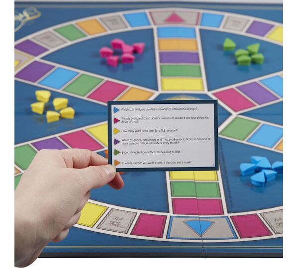 Το νέο Trivial Pursuit θα σε συναρπάσει. Διαθέτει 2400 ερωτήσεις σε 6 κατηγορίες: Γεωγραφία, Ψυχαγωγία, Ιστορία, Τέχνη και Λογοτεχνία, Επιστήμη και Φύση, Αθλητισμός και Αναψυχή. Γίνε ο πρώτος παίκτης που θα μαζέψει ένα τργωνάκι για κάθε μία από τις 6 κατηγορίες και θα απαντήσει στη τελευταία ερώτηση.