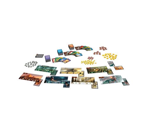 Περιεχόμενα: 1 ταμπλό, 55 κάρτες, 14 δείκτες, 1 πιόνι, 31 νομίσματα, 1 μπλοκ βαθμολογίας, 1 βιβλίο οδηγιών, 1 βοήθημα