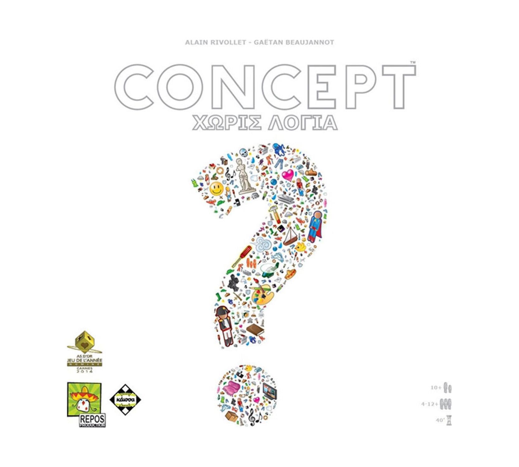 Χάρις στο Concept, δεν χρειάζεται πλέον να μιλάτε για να επικοινωνήσετε! Συνδυάζοντας απλές εικόνες, μπορείτε να οδηγήσετε τους άλλους στο να μαντέψουν εκατοντάδες αντικείμενα, τίτλους ή προσωπικότητες!