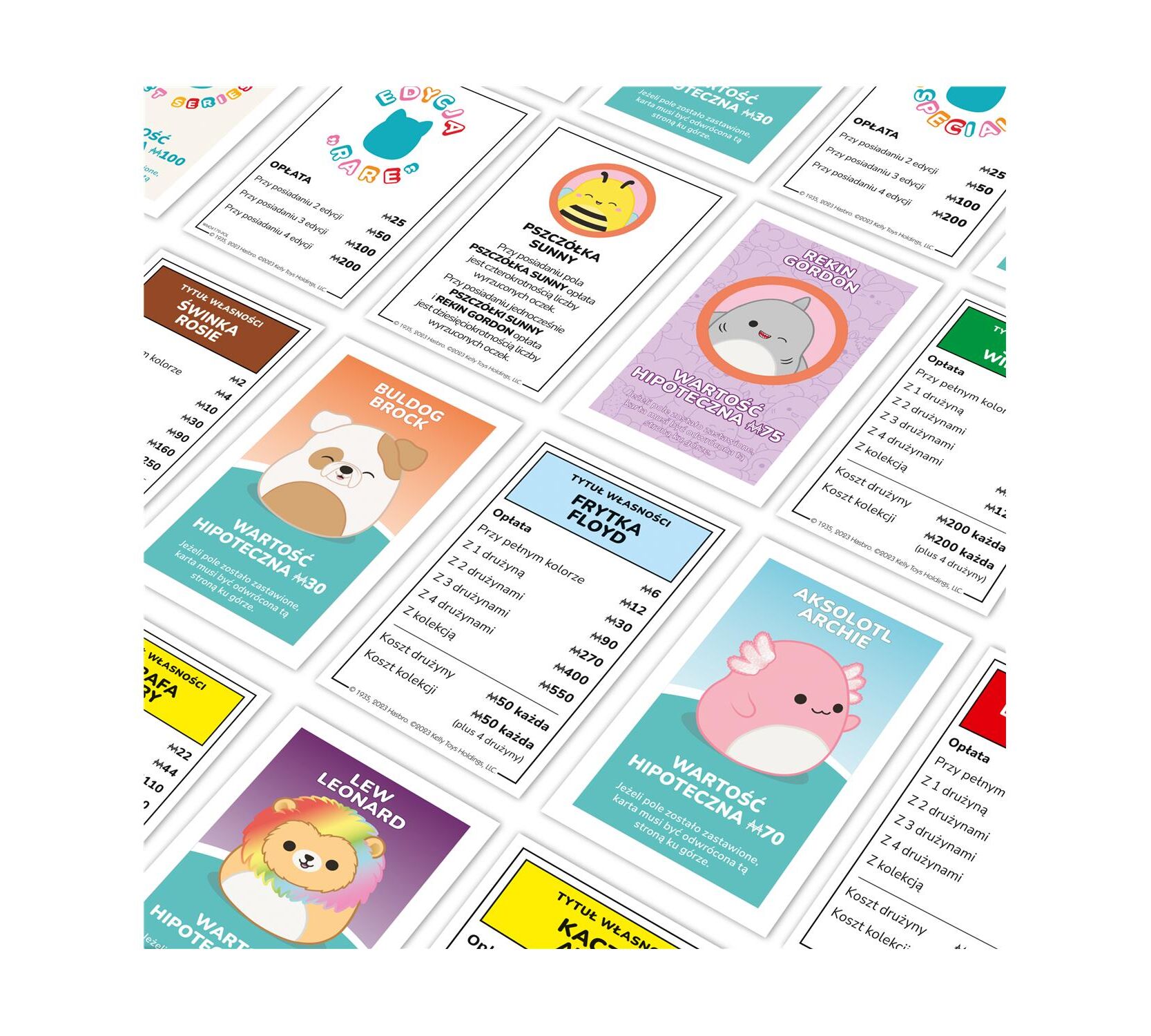 Κάρτες & tokens: Όλες οι λεπτομέρειες (κάρτες ιδιοκτησιών, χρήματα, tokens) έχουν θεματική Squishmallows πινελιά, κάνοντας το παιχνίδι πιο ζωντανό και συλλεκτικό.