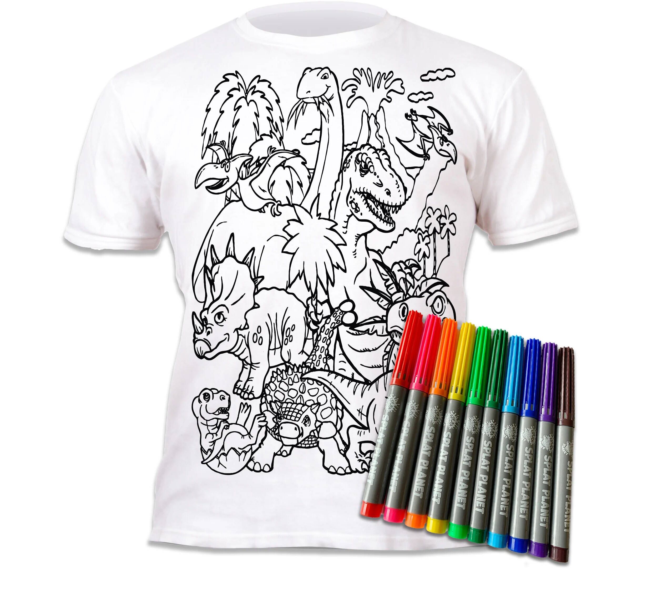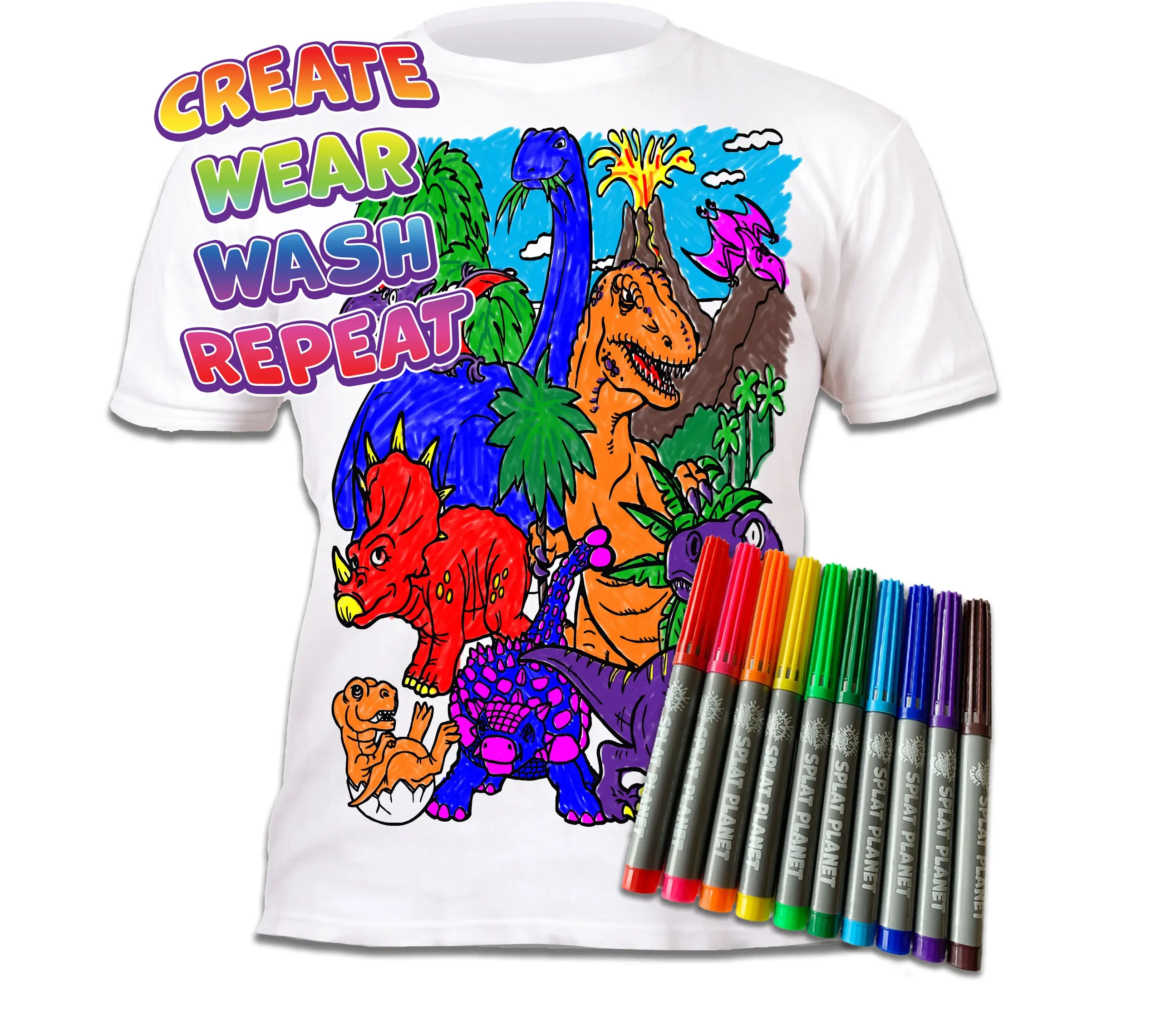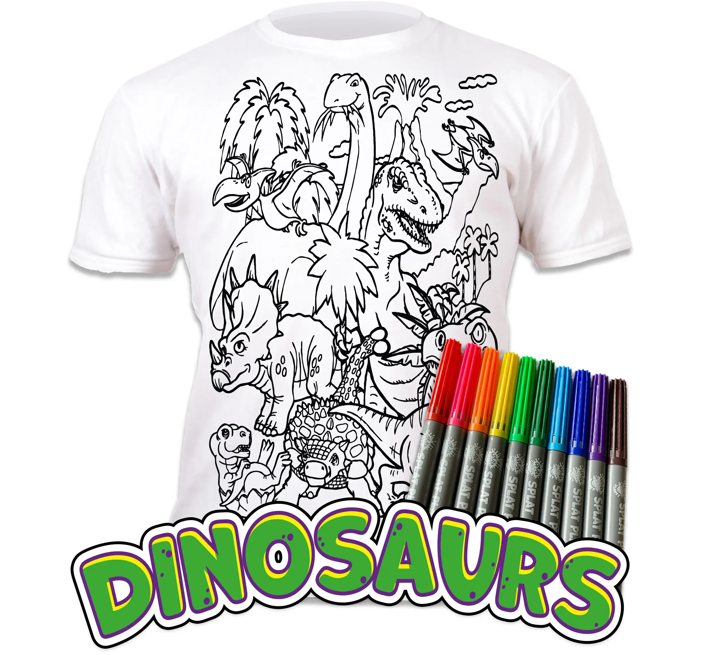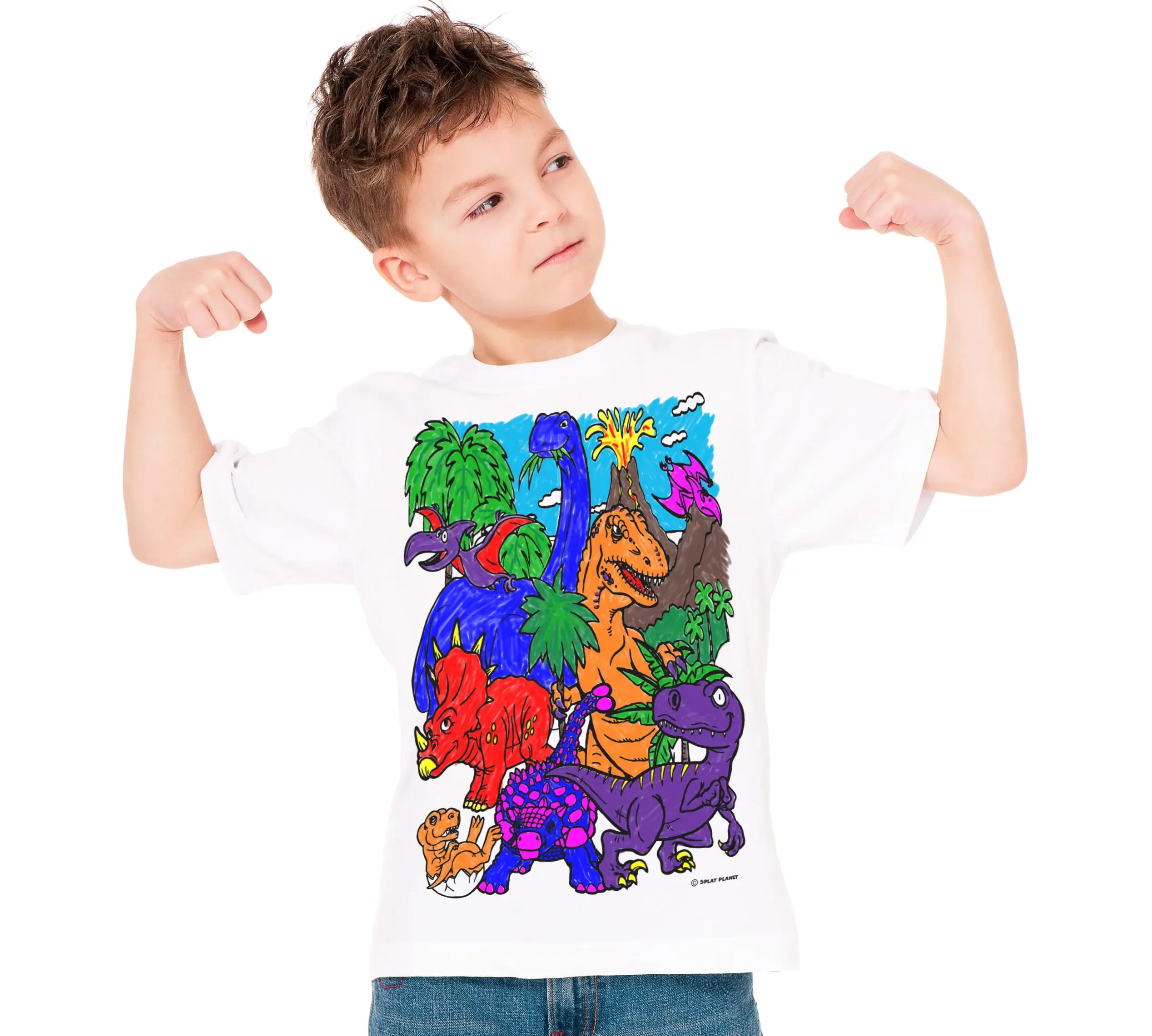 Ταξιδέψτε στην εποχή των δεινοσαύρων με το μαγικό T-shirt της Splat Planet! Το σχέδιο Dinosaurs προσκαλεί τους μικρούς παλαιοντολόγους να ζωντανέψουν τον προϊστορικό κόσμο, χρωματίζοντας τους αγαπημένους τους δεινόσαυρους ακριβώς όπως τους φαντάζονται.