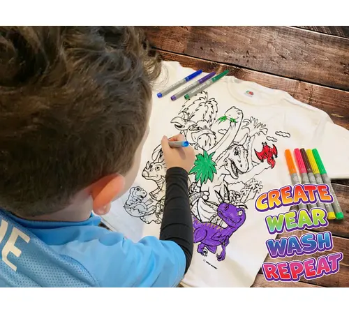 Αυτό δεν είναι ένα απλό μπλουζάκι, αλλά μια δημιουργική δραστηριότητα που δεν τελειώνει ποτέ. Χάρη στους ειδικούς "μαγικούς" μαρκαδόρους που περιλαμβάνονται στη συσκευασία, τα παιδιά μπορούν να χρωματίσουν τη δική τους περιπέτεια, να φορέσουν το μπλουζάκι με περηφάνια και όταν θέλουν να αλλάξουν τα χρώματα, απλά να το βάλουν στο πλυντήριο.