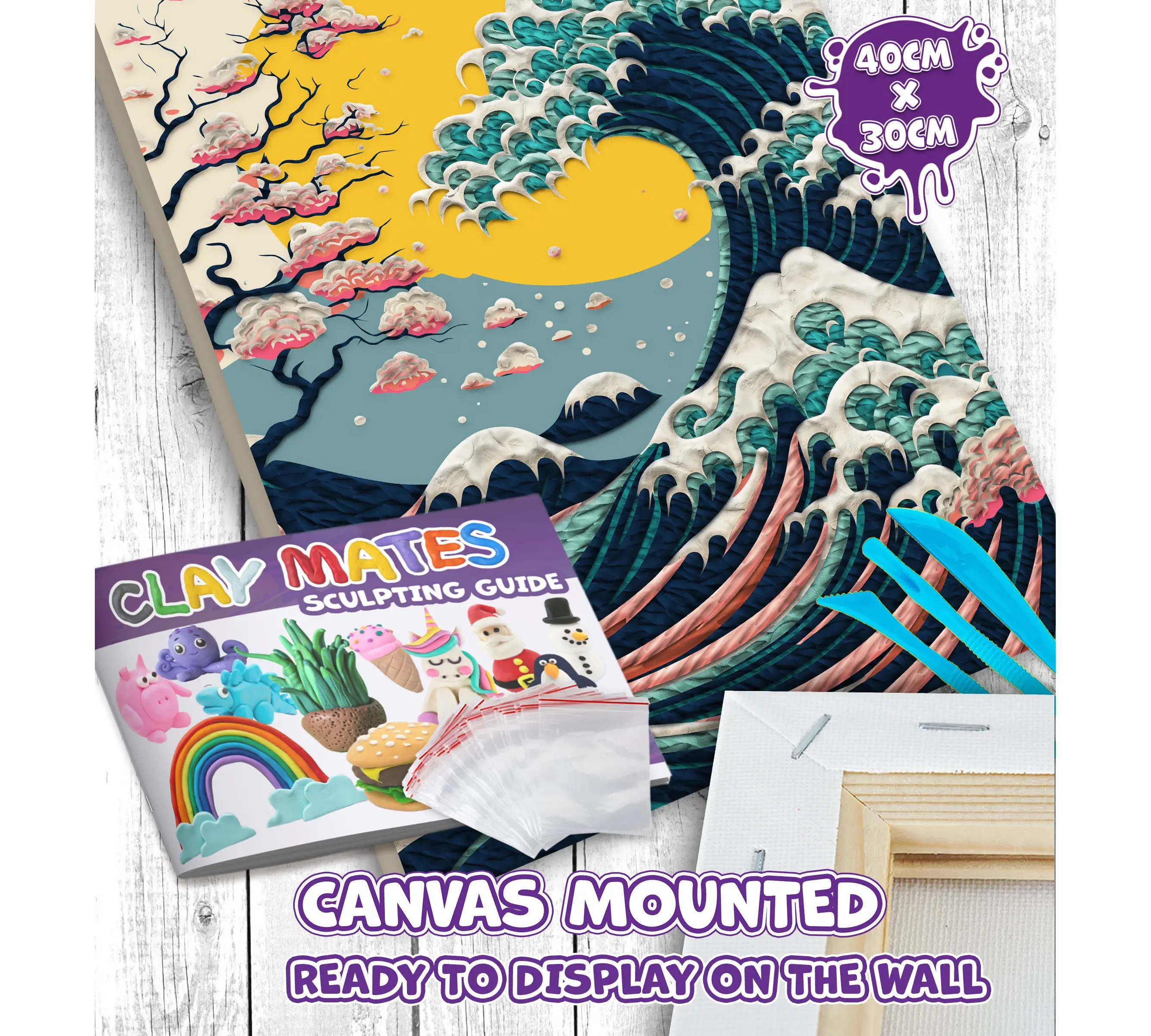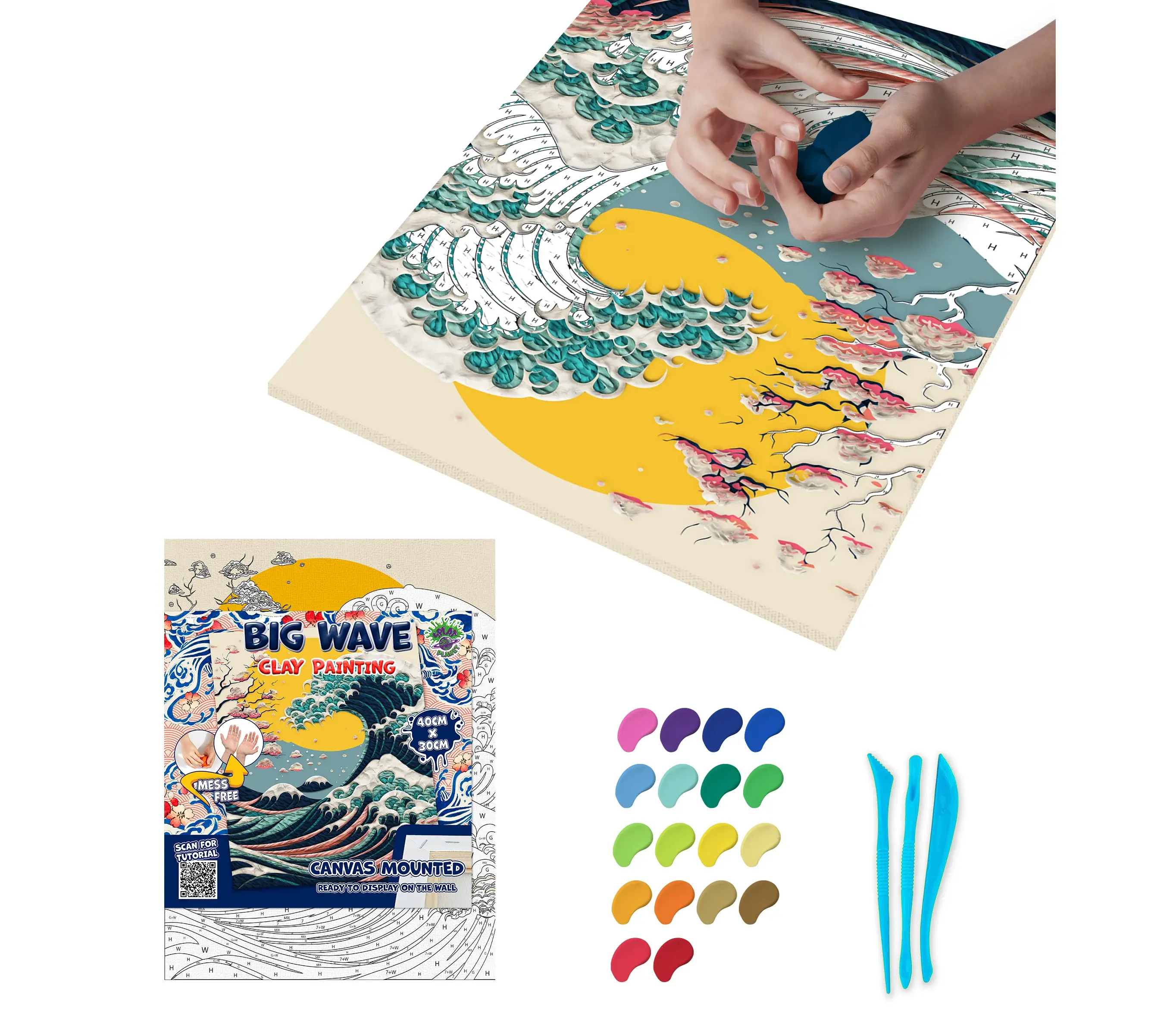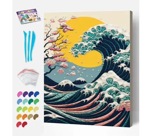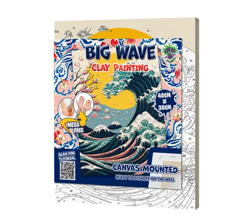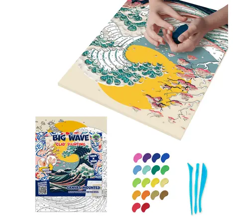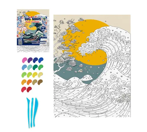 Αναπαραστήστε ένα από τα πιο εμβληματικά έργα τέχνης στον κόσμο με έναν εντελώς νέο, τρισδιάστατο τρόπο! Το σετ Clay Painting (Ζωγραφική με Πηλό) "Big Wave" της Splat Planet σας προσκαλεί να δημιουργήσετε το δικό σας ανάγλυφο αριστούργημα, δίνοντας βάθος και κίνηση στα κύματα χρησιμοποιώντας μαλακό πηλό.