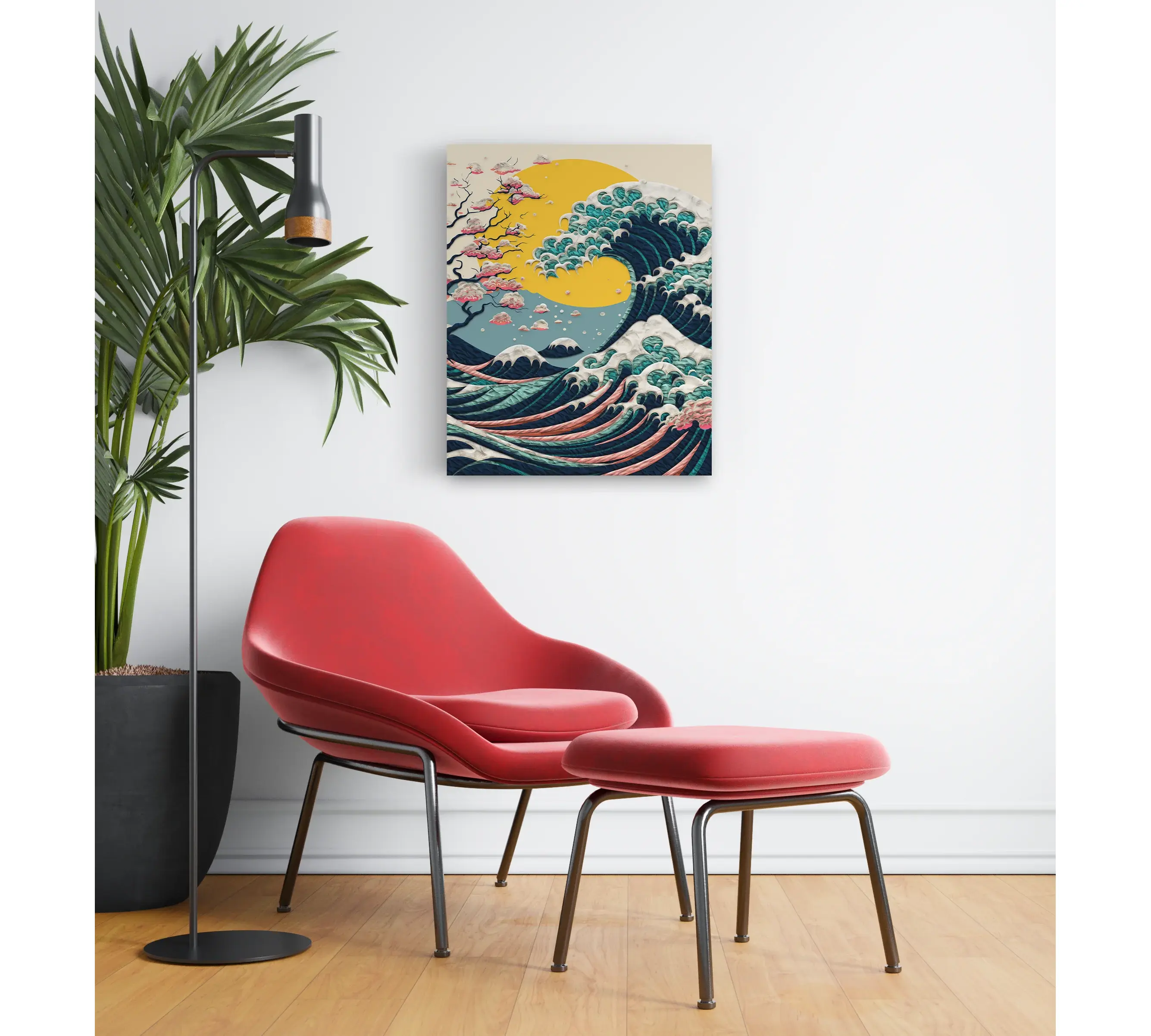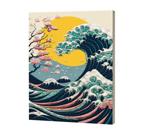 Αυτή η τεχνική προσφέρει μια μοναδική αισθητηριακή εμπειρία, καθώς ο δημιουργός "χτίζει" το έργο στρώση-στρώση πάνω στον προ-εκτυπωμένο καμβά. Η χρήση του πηλού επιτρέπει την απόδοση της ορμής του κύματος με έναν τρόπο που η απλή ζωγραφική δεν μπορεί να πετύχει. Ο καμβάς είναι ήδη προ-τεντωμένος σε ξύλινο τελάρο, έτοιμος να υποδεχτεί τη δημιουργία σας.