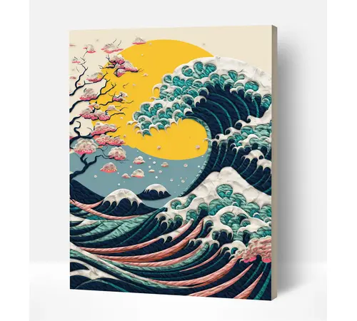 • Προ-εκτυπωμένο Καμβά: 100% λινό ύφασμα με το σχέδιο "The Great Wave", ήδη τοποθετημένο σε σταθερό ξύλινο πλαίσιο (τελάρο)