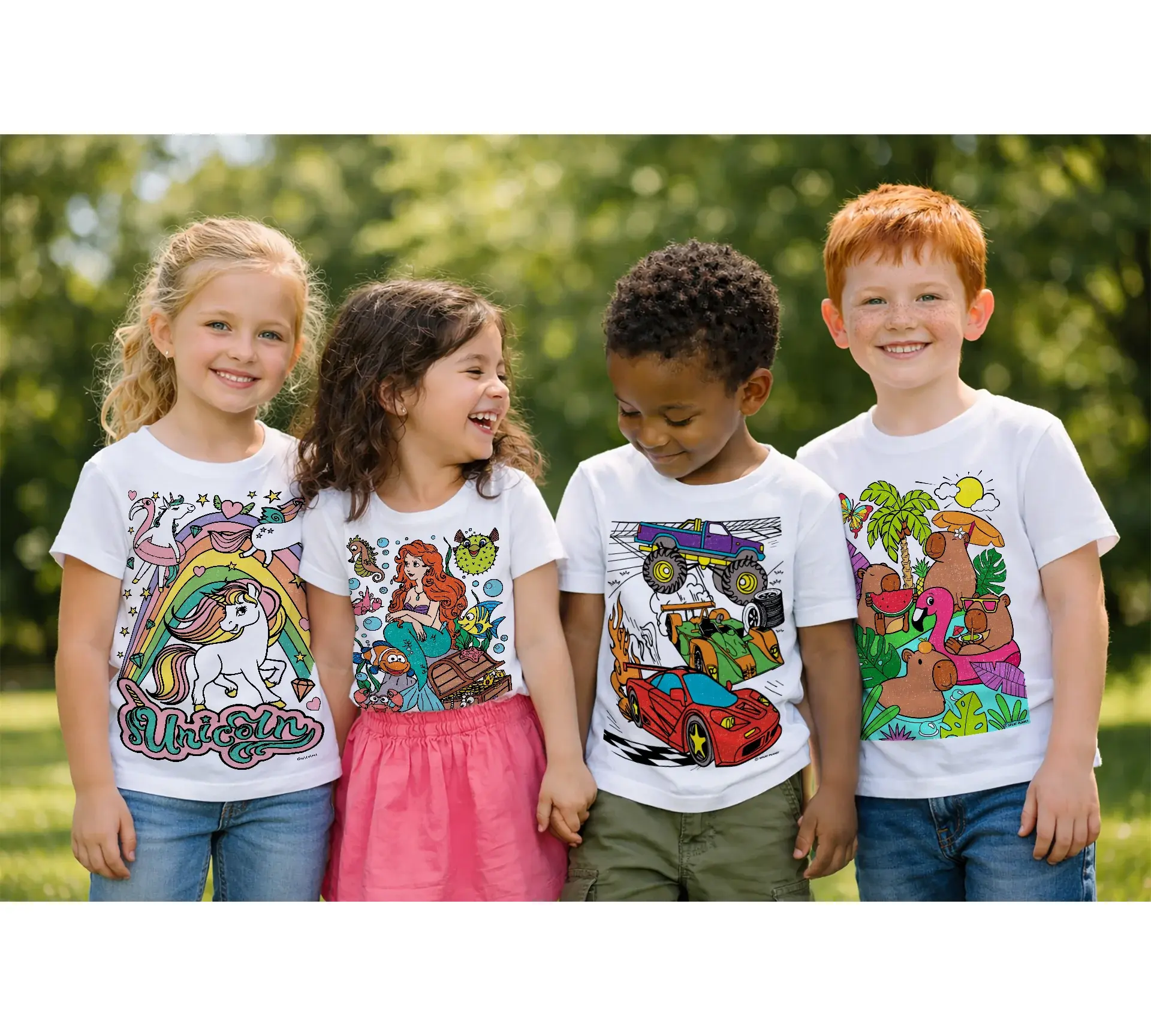 Αυτό δεν είναι ένα απλό μπλουζάκι, αλλά μια δημιουργική δραστηριότητα που δεν τελειώνει ποτέ. Χάρη στους ειδικούς "μαγικούς" μαρκαδόρους που περιλαμβάνονται στη συσκευασία, τα παιδιά μπορούν να χρωματίσουν το σχέδιο, να φορέσουν το μπλουζάκι με περηφάνια και όταν βαρεθούν τα χρώματα, απλά να το βάλουν στο πλυντήριο.