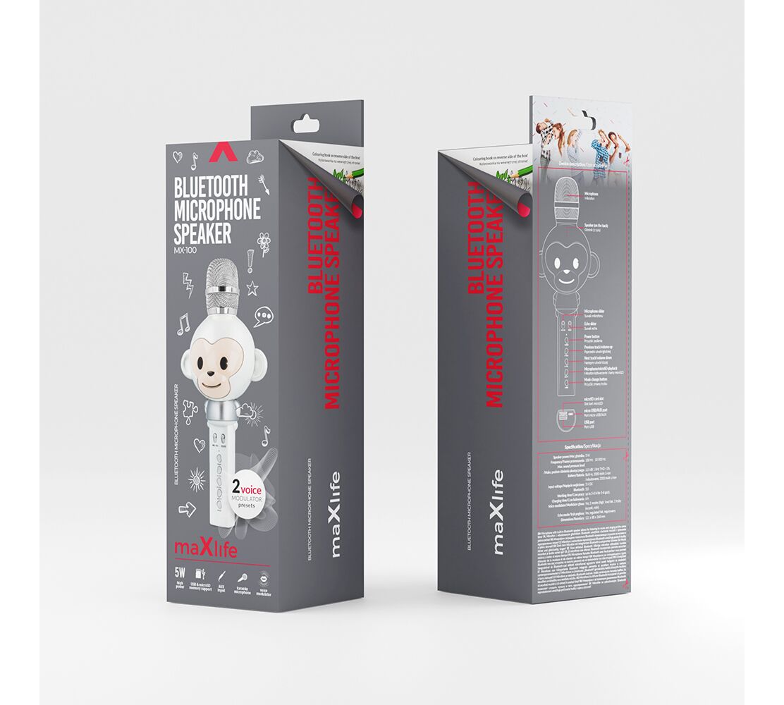 Maxlife Bluetooth microphone with speaker MX-100 - Ασύρματο Μικρόφωνο Karaoke για παιδιά με ηχείο σε ασημί Χρώμα