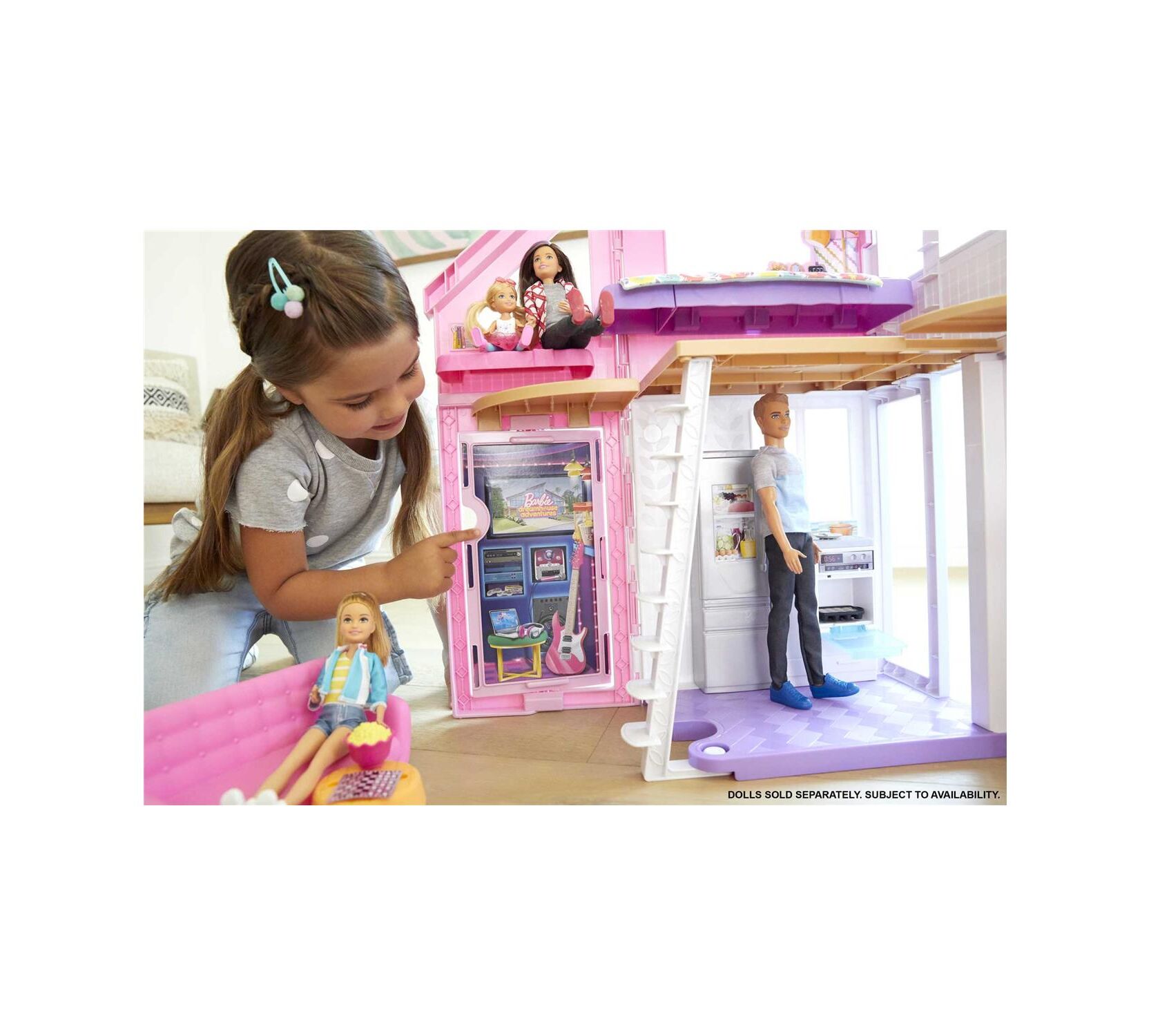 Με δύο ορόφους, μέρη που μετατρέπονται και περισσότερα από 25 κομμάτια για να διακοσμήσουν τα έξι δωμάτια, τα παιδιά θα δημιουργήσουν αμέτρητες ιστορίες. Το σαλόνι μετατρέπεται σε δωμάτιο ψυχαγωγίας, το ντους γίνεται τουαλέτα ομορφιάς και η οροφή γίνεται κουκέτα για να κοιμούνται οι 4 αδερφούλες της Barbie. Φυσικά, δεν λείπουν κλασικοί χώροι, όπως ένα μπάνιο με τουαλέτα, νιπτήρα και ντους, μία κουζίνα με ψυγείο και φούρνο που ανοίγουν και ένας φράχτης που έχει αυτοκόλλητο σχέδιο με μία ψησταριά.