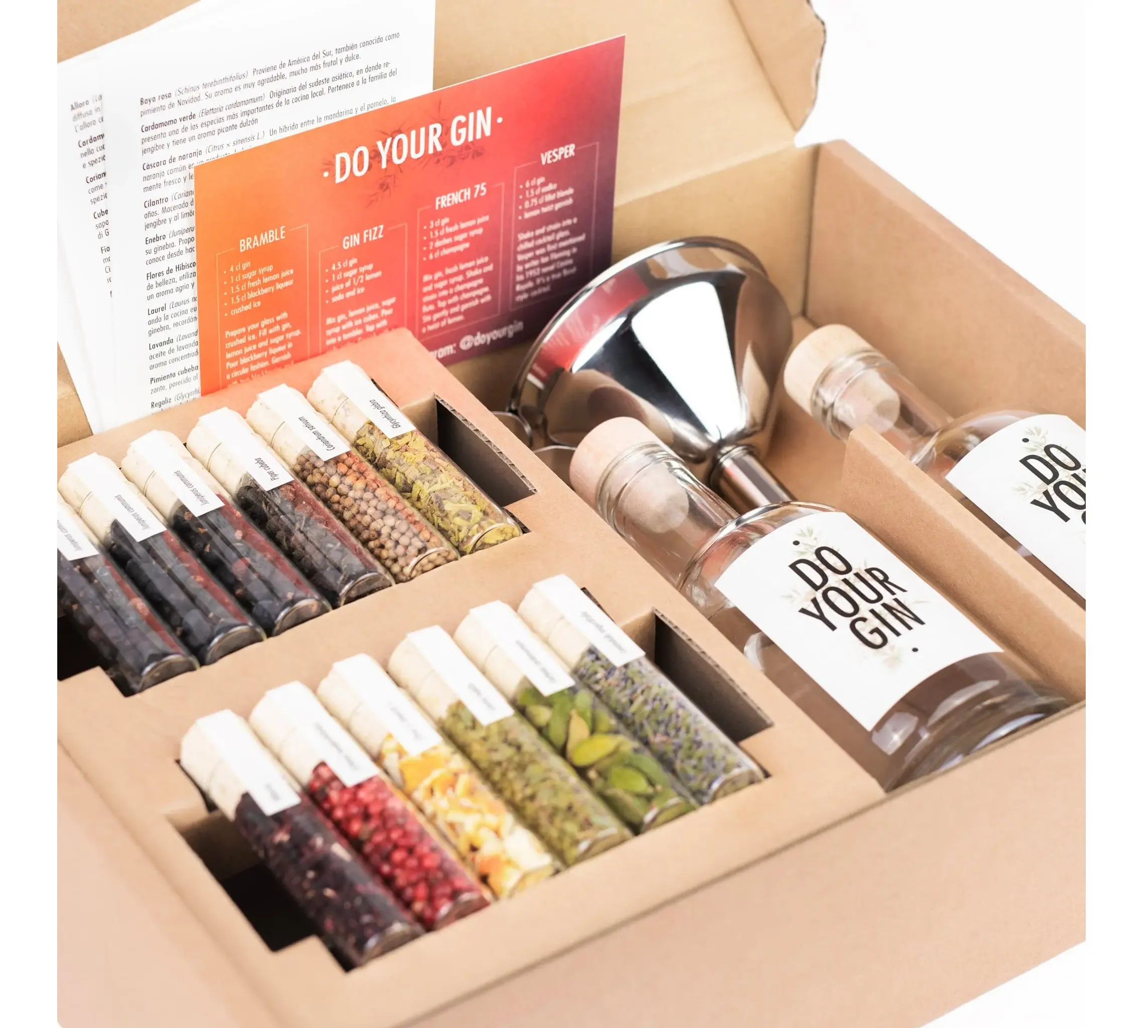 Αφήστε ελεύθερη την αίσθηση της γεύσης σας και πειραματιστείτε σαν επαγγελματίας mixologist! Στην καρδιά αυτού του κιτ βρίσκονται 12 κομψά γυάλινα φιαλίδια, γεμάτα με αποξηραμένα βότανα και μπαχαρικά, προσεκτικά διαλεγμένα στο χέρι. Συνδυάστε τα σύμφωνα με τις προτιμήσεις σας ή ακολουθήστε τις κάρτες συνταγών που περιλαμβάνονται, για να δώσετε στο τζιν σας το τέλειο αρωματικό προφίλ. Το σετ παρέχει όλο τον απαραίτητο εξοπλισμό, από τις κομψές γυάλινες φιάλες αποθήκευσης μέχρι το χωνί και τα φίλτρα.