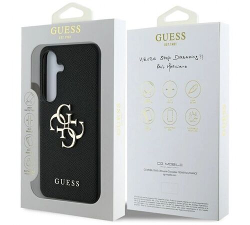 Guess - Grained 4G Metal Logo Back Case for Samsung Galaxy S25 Plus - Black - Θήκη προστασίας για Samsung S25 Μαύρο