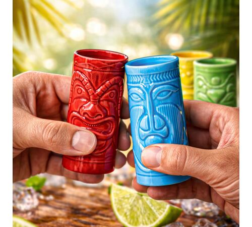 Φέρτε την εξωτική ατμόσφαιρα των νησιών της Πολυνησίας στο επόμενο πάρτι σας με το σετ Tiki Shot Glasses της MikaMax! Αυτά τα πρωτότυπα σφηνάκια είναι σχεδιασμένα για να προσθέσουν μια τροπική, καλοκαιρινή νότα σε κάθε περίσταση, μετατρέποντας το απλό κέρασμα σε μια διασκεδαστική εμπειρία.