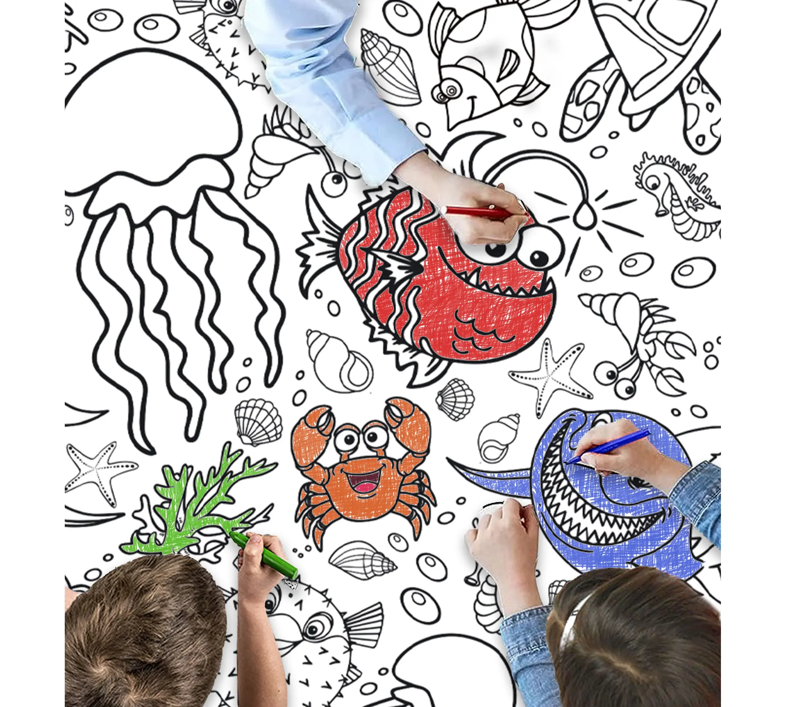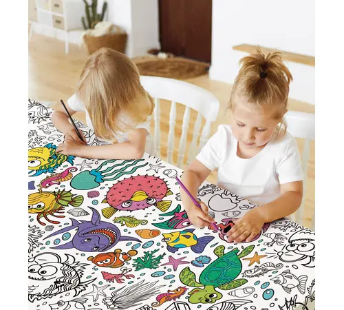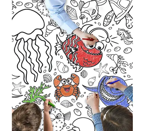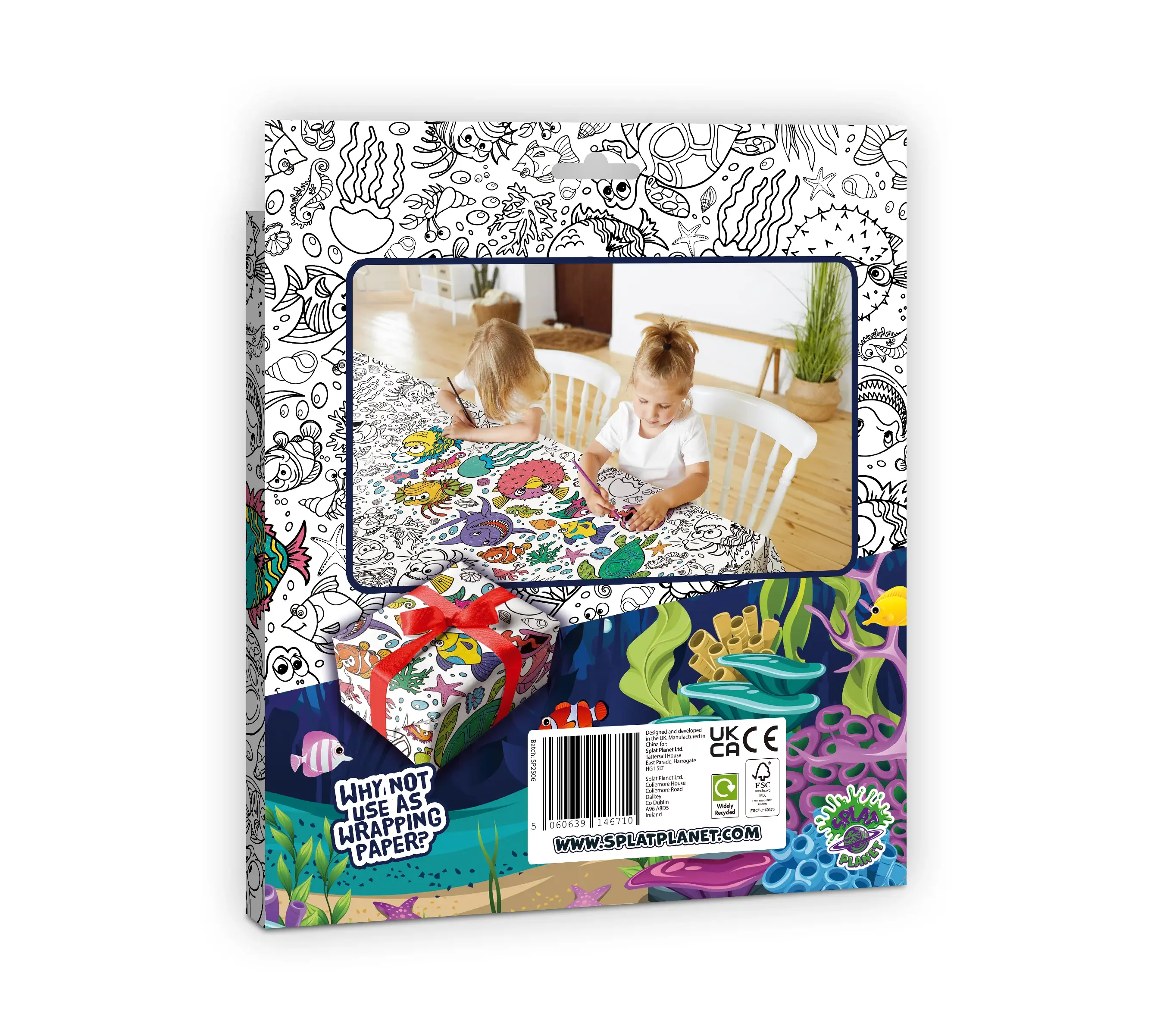 Βουτήξτε στον μαγικό κόσμο της δημιουργικότητας με το Sea Life Giant Colour-In Table Cloth της Splat Planet! Αυτό το γιγάντιο τραπεζομάντηλο ζωγραφικής μετατρέπει το τραπέζι σας σε έναν τεράστιο, διασκεδαστικό καμβά γεμάτο εντυπωσιακά θαλάσσια πλάσματα, κοραλλιογενείς υφάλους και σκηνές του ωκεανού, περιμένοντας τα παιδιά να του δώσουν ζωή και χρώμα.