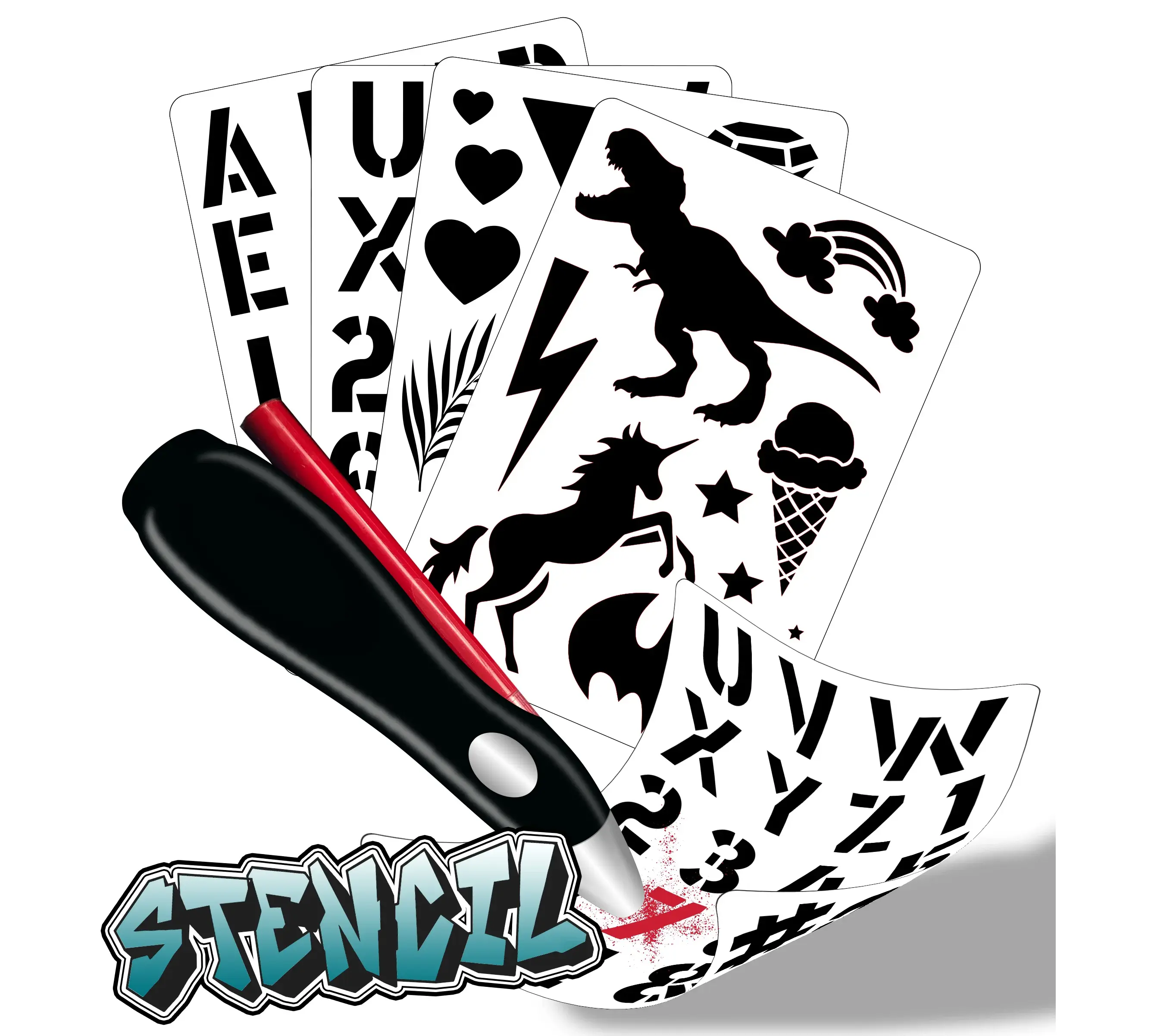 - Περιεχόμενα Συσκευασίας: 1 ηλεκτρικό στυλό airbrush, 12 μη τοξικοί/πλενόμενοι μαρκαδόροι, 5 φύλλα με στένσιλ, καλώδιο φόρτισης USB, φυλλάδιο ιδεών