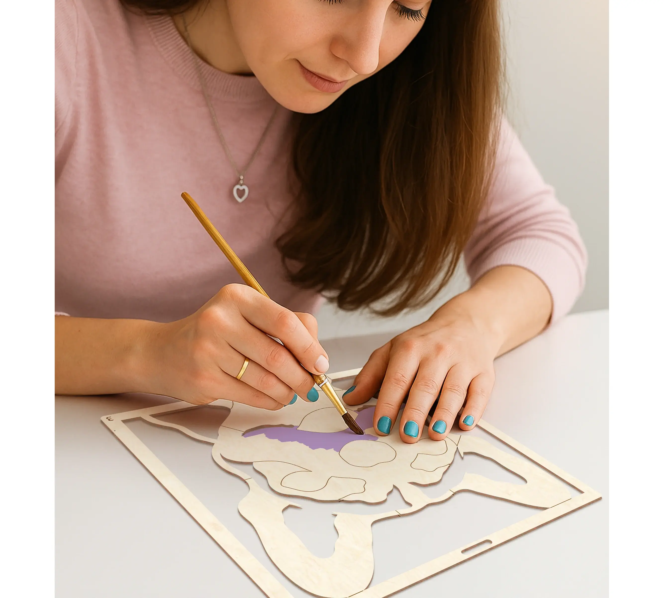 - Περιεχόμενα Συσκευασίας: Ξύλινα κομμάτια (layers), σετ χρωμάτων, πινέλα, κόλλα, οδηγίες συναρμολόγησης