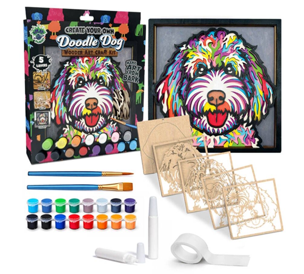 Ολοκληρωμένο ξύλινο σετ ζωγραφικής "Doodle dog" από την Splat Planet. Περιλαμβάνει ξύλινη επιφάνεια με το σχέδιο για μια ξεχωριστή δημιουργική δραστηριότητα.