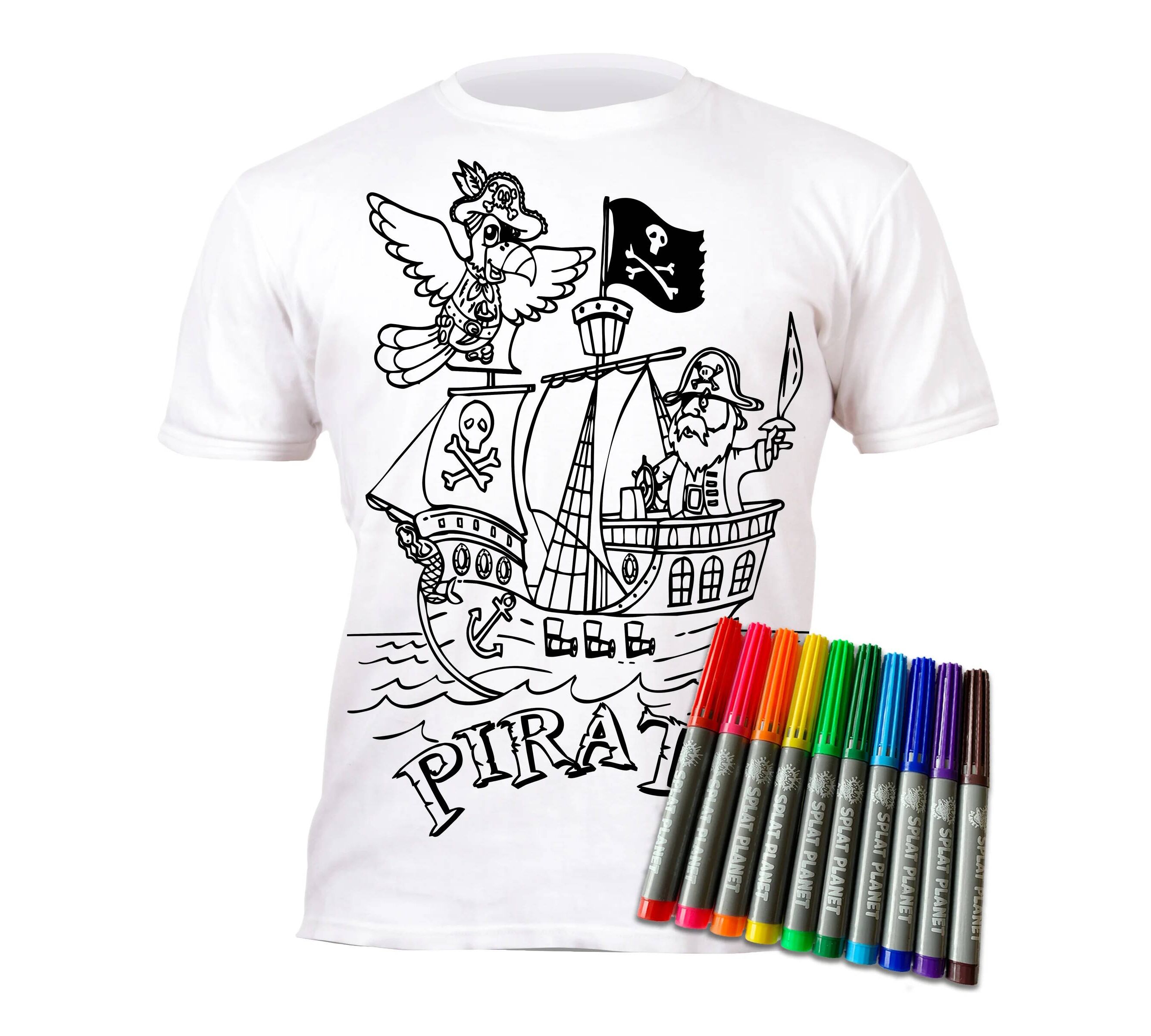 Σαλπάρετε για μια δημιουργική περιπέτεια στις επτά θάλασσες! Το πλενόμενο T-shirt της Splat Planet με σχέδιο Pirate είναι το ιδανικό δώρο για τους μικρούς εξερευνητές που ονειρεύονται θησαυρούς και πειρατικά πλοία.