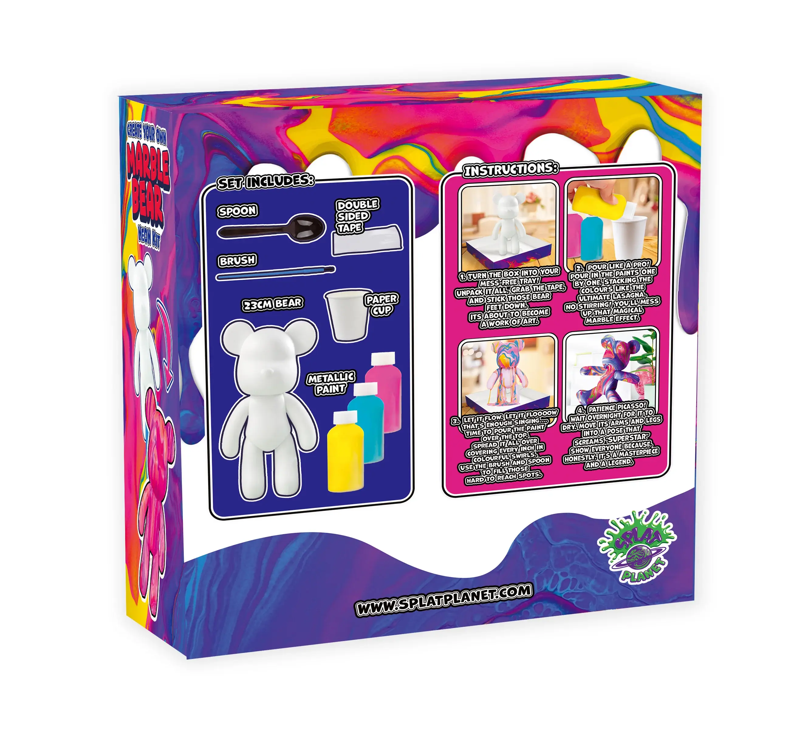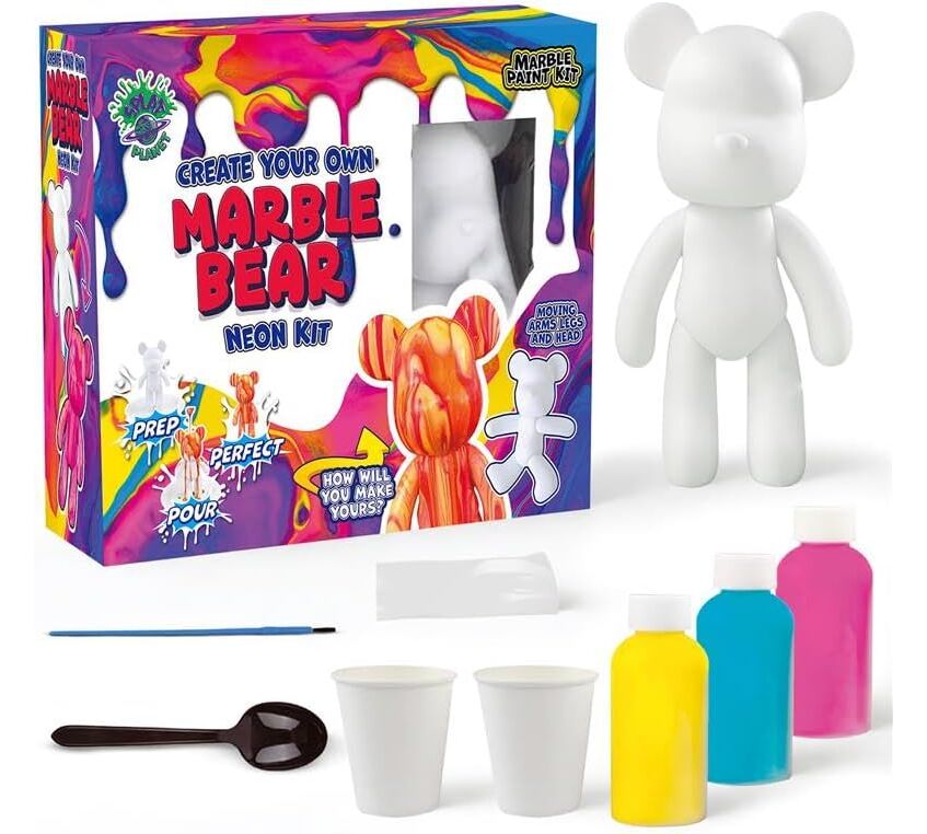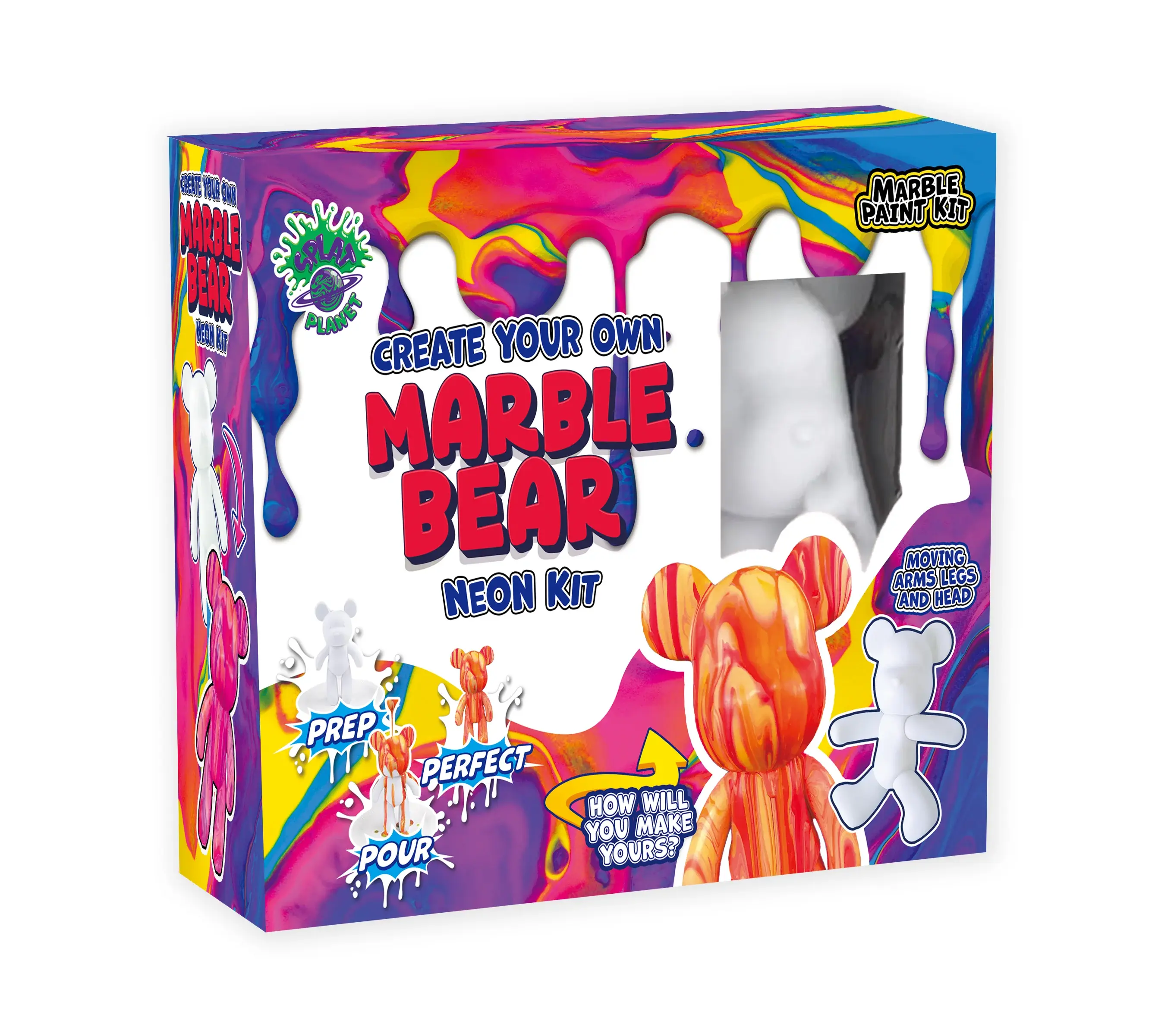 Φέρτε την τέχνη του Fluid Art στο σπίτι σας με το εντυπωσιακό σετ Neon Marble Bear Kit της Splat Planet! Αυτό το πλήρες κιτ σας επιτρέπει να δημιουργήσετε τη δική σας, μοναδική φιγούρα αρκούδας με την τεχνική της ροής χρωμάτων (paint pouring), προσφέροντας ένα εκρηκτικό, νέον αποτέλεσμα που θα φωτίσει τον χώρο σας.