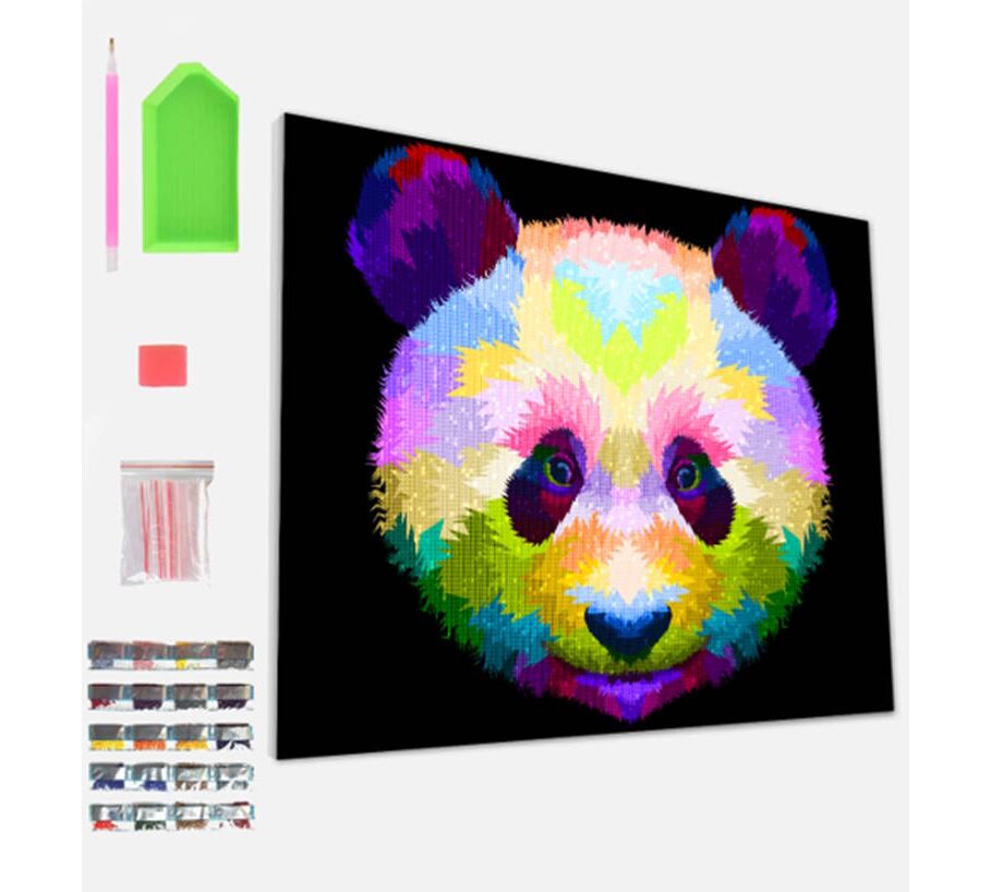 Ολοκληρωμένο σετ Diamond Painting "Panda" από την Splat Planet. Περιλαμβάνει λινό καμβά 30x40cm προ-τοποθετημένο σε ξύλινο τελάρο, χρωματιστά διαμαντάκια και όλα τα απαραίτητα εργαλεία.