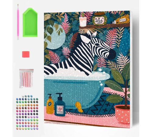 Ολοκληρωμένο σετ Diamond Painting "Wild Wash" από την Splat Planet. Περιλαμβάνει λινό καμβά 30x40cm προ-τοποθετημένο σε ξύλινο τελάρο, χρωματιστά διαμαντάκια και όλα τα απαραίτητα εργαλεία.