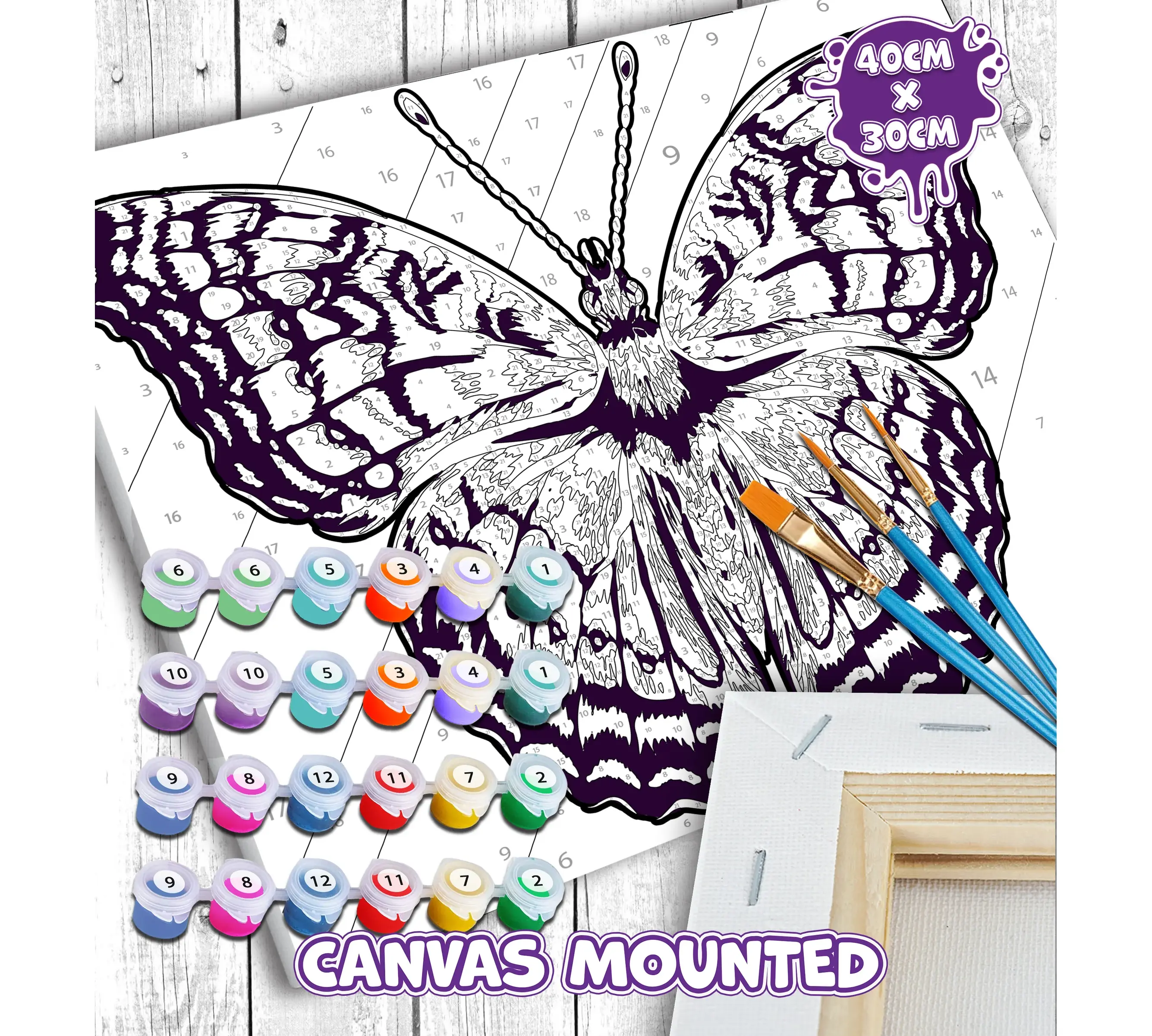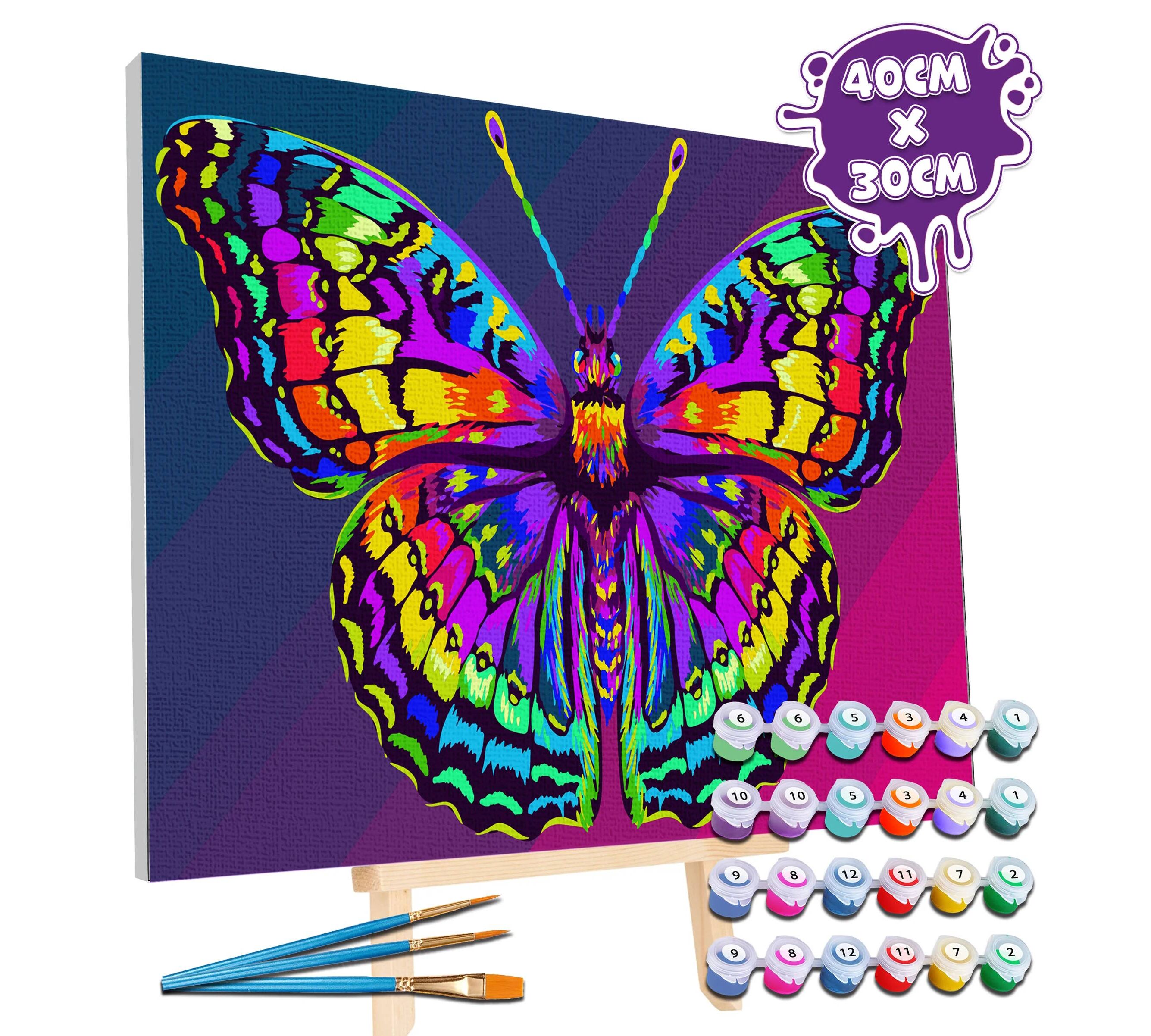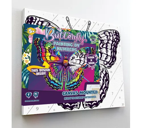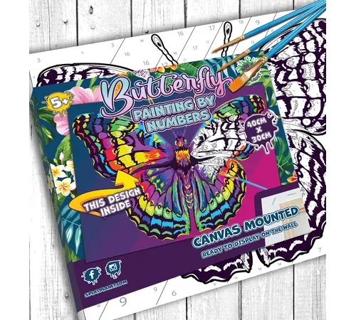 Αναδείξτε την καλλιτεχνική σας πλευρά με το εντυπωσιακό σετ Ζωγραφικής με Αριθμούς (Paint by Numbers) "Butterfly" της Splat Planet! Ένα πανέμορφο και πολύχρωμο σχέδιο πεταλούδας περιμένει να ζωντανέψει μέσα από τα χέρια σας, προσφέροντας μια δημιουργική και απόλυτα χαλαρωτική εμπειρία.