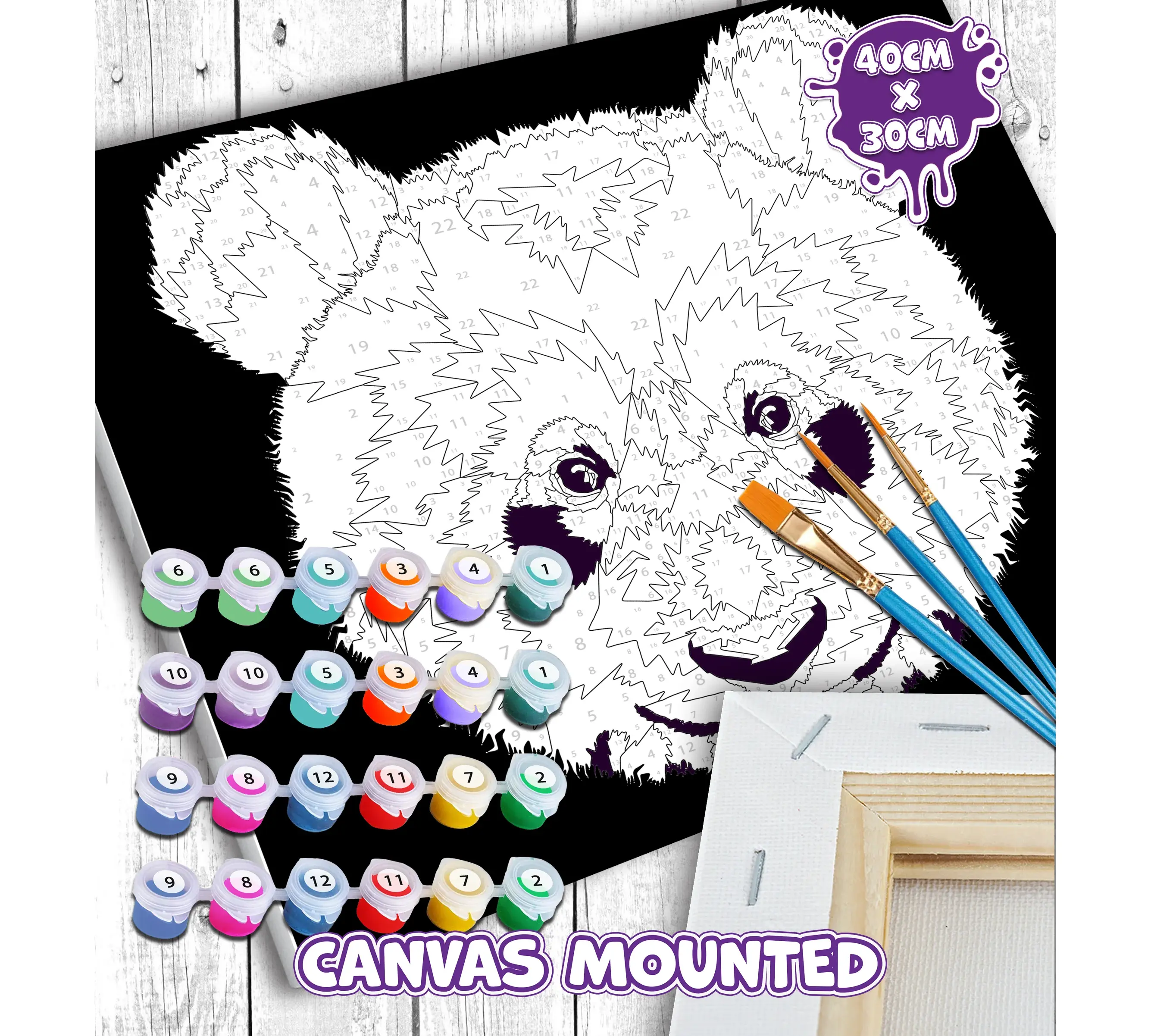 Δημιουργήστε το δικό σας καλλιτεχνικό αριστούργημα με το σετ Ζωγραφικής με Αριθμούς (Paint by Numbers) "Panda" της Splat Planet! Ένα γλυκό και πολύχρωμο σχέδιο Panda περιμένει να πάρει ζωή μέσα από τα χέρια σας, προσφέροντας μια δημιουργική διαφυγή που συνδυάζει τη χαλάρωση με τη χαρά της δημιουργίας.