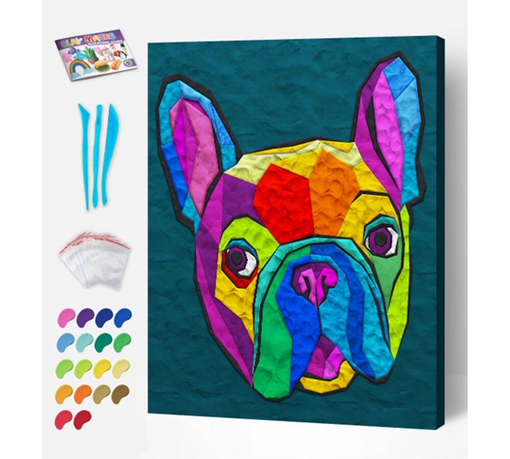 Ολοκληρωμένο σετ ζωγραφικής με πηλό "French Bulldog" από την Splat Planet. Περιλαμβάνει καμβά 30x30cm σε ξύλινο τελάρο, σετ μαλακών πηλών που στεγνώνουν με τον αέρα και ειδικά εργαλεία μοντελισμού. Μια πρωτότυπη δημιουργική δραστηριότητα.