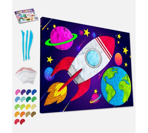 Ολοκληρωμένο σετ ζωγραφικής με πηλό "Space" από την Splat Planet. Περιλαμβάνει καμβά 40x30cm σε ξύλινο τελάρο, σετ μαλακών πηλών που στεγνώνουν με τον αέρα και ειδικά εργαλεία μοντελισμού. Μια πρωτότυπη δημιουργική δραστηριότητα.