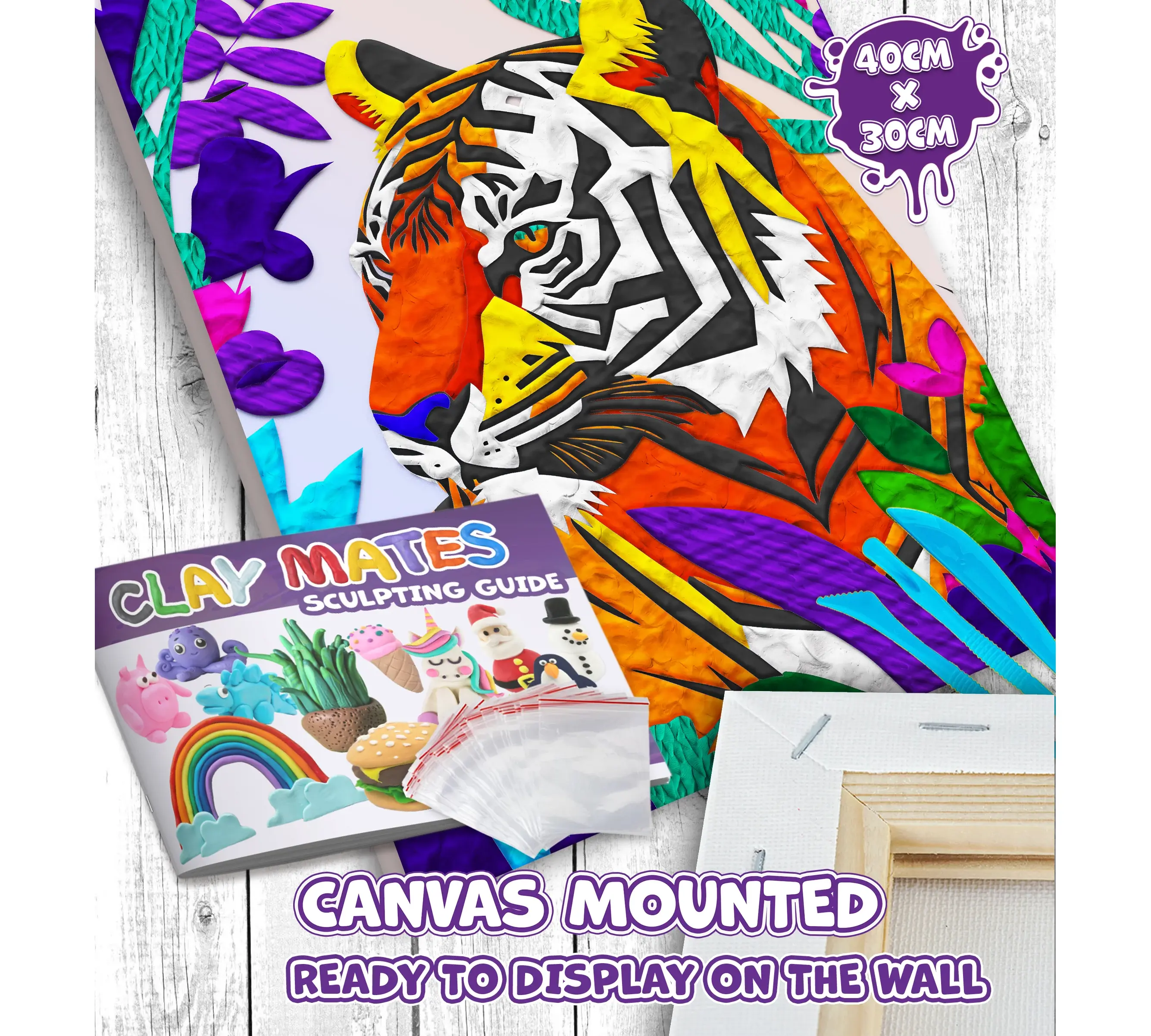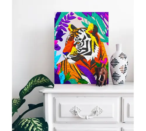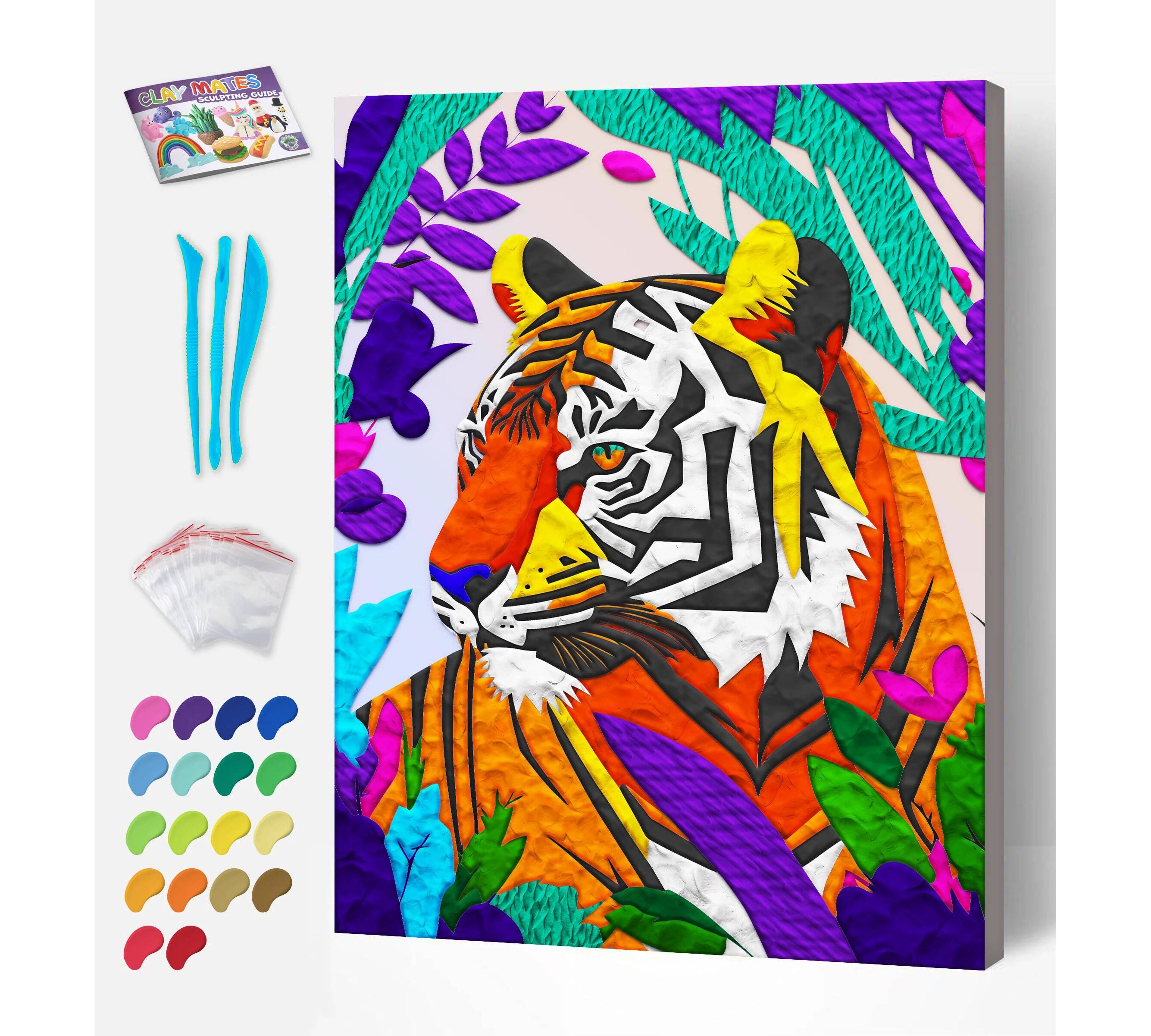 Η ζωγραφική με πηλό αποτελεί μια εξαιρετική αισθητηριακή δραστηριότητα. Χρησιμοποιώντας τον πανάλαφρο και εύπλαστο πηλό που περιλαμβάνεται, ο δημιουργός "χτίζει" το σχέδιο πάνω στον προ-εκτυπωμένο καμβά, δίνοντας βάθος στις ρίγες και ένταση στο βλέμμα της τίγρης. Το αποτέλεσμα είναι ένας μοναδικός 3D πίνακας που ξεχωρίζει από κάθε άλλη χειροτεχνία. Ο καμβάς είναι ήδη προ-τεντωμένος σε ξύλινο τελάρο, έτοιμος για άμεση χρήση.