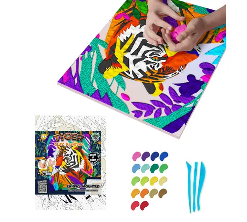 Δώστε ζωντάνια και άγρια ομορφιά στον χώρο σας με το σετ Clay Painting (Ζωγραφική με Πηλό) "Tiger" της Splat Planet! Αυτή η πρωτότυπη τεχνική επιτρέπει στα παιδιά και τους εφήβους να δημιουργήσουν μια εντυπωσιακή, ανάγλυφη απεικόνιση της τίγρης, χρησιμοποιώντας μαλακό πηλό αντί για παραδοσιακά χρώματα.