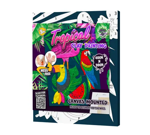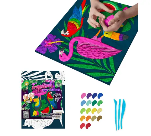Ανακαλύψτε μια νέα, τρισδιάστατη εμπειρία τέχνης με το σετ Clay Painting (Ζωγραφική με Πηλό) "Tropical" της Splat Planet! Ξεφύγετε από τα συνηθισμένα πινέλα και χρησιμοποιήστε τον ειδικό, πανάλαφρο πηλό για να δώσετε μορφή, υφή και βάθος σε ένα πανέμορφο τροπικό σχέδιο.