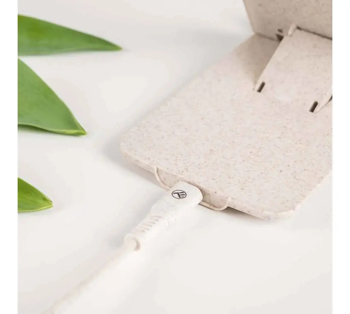 Κατασκευασμένος από 35% ίνες άχυρου σιταριού και 65% ABS, με λεπτό, πτυσσόμενο σχεδιασμό, αυτός ο ασύρματος φορτιστής ταιριάζει οπουδήποτε. Προσφέρει δύο λειτουργίες ταυτόχρονα - είναι μια βολική βάση τηλεφώνου και ταυτόχρονα παρέχει ισχύ φόρτισης. Μπορεί να παρέχει ισχύ έως και 15W και προσαρμόζεται αυτόματα σε οποιεσδήποτε ανάγκες smartphone. Επιπλέον, προσφέρει γρήγορη φόρτιση για Apple, Samsung, LG και άλλα smartphone Qi. Αυξημένη ασφάλεια χάρη στην προστασία από υπερτάσεις, τον έλεγχο θερμοκρασίας και την ανίχνευση ξένων αντικειμένων. Εξοπλισμένος με θύρα τροφοδοσίας Type C και καλώδιο φόρτισης.