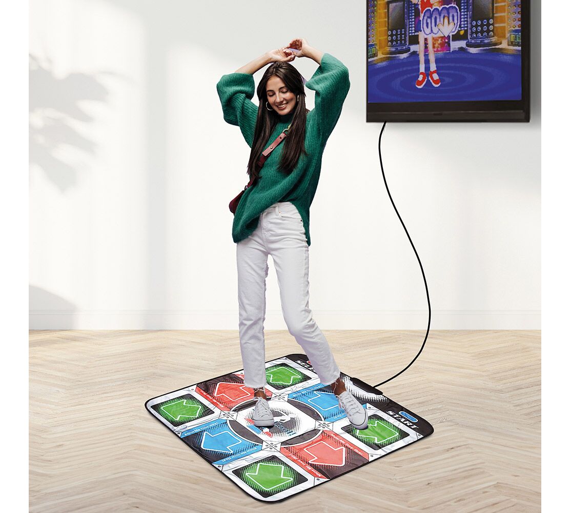 Με retro αισθητική εμπνευσμένη από τα κλασικά παιχνίδια χορού των ’90s και ενσωματωμένο σύστημα που αναγνωρίζει τα βήματά σου, αυτό το χαλάκι είναι ιδανικό για παιδιά και ενήλικες που θέλουν να ενώνουν παιχνίδι, ρυθμό και άσκηση με έναν διασκεδαστικό τρόπο.